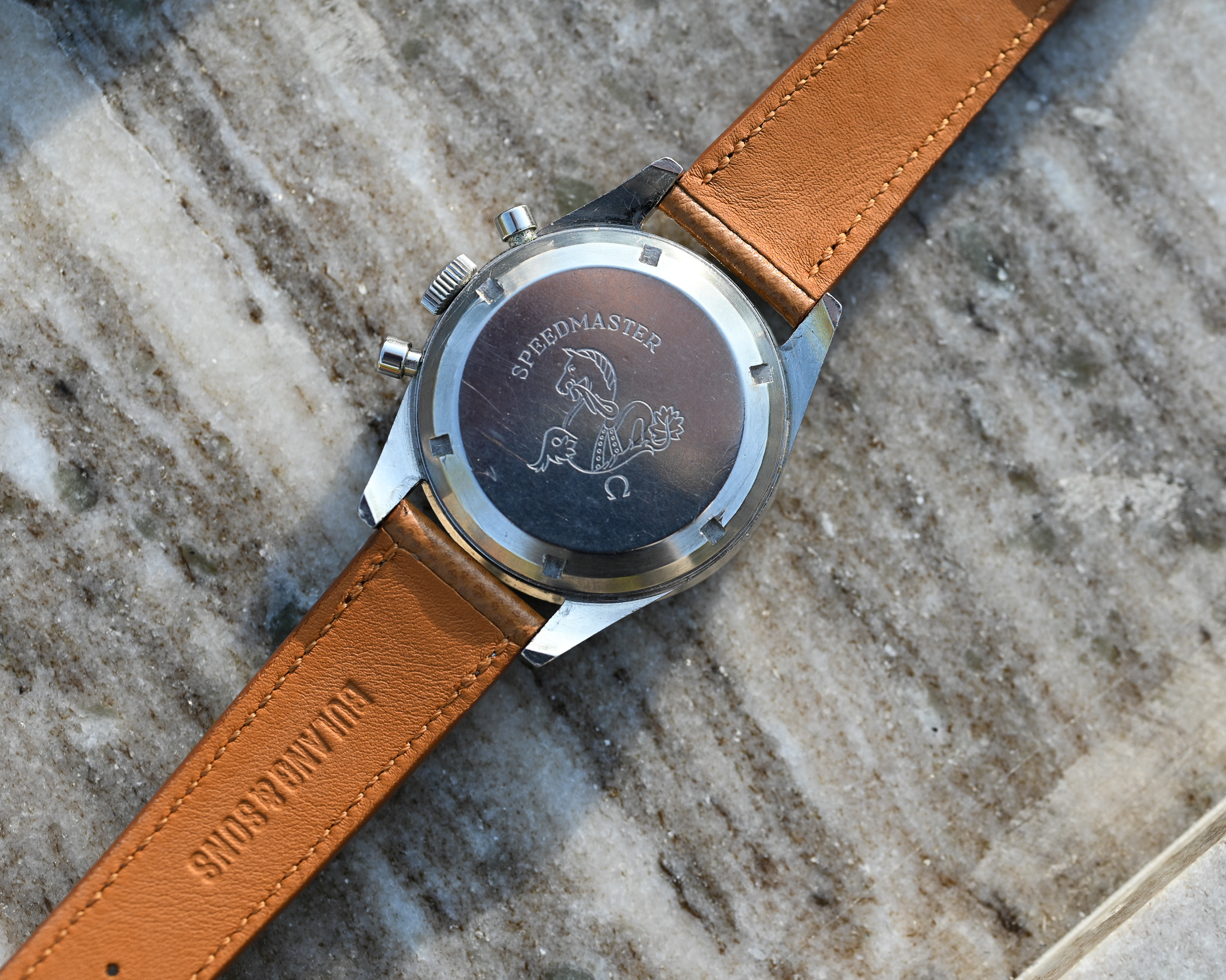 Auch technisch und historisch zeigt sich diese Speedmaster stimmig: Die Werknummer im Bereich von 18,9 Millionen passt exakt in die korrekte Produktionsrange dieser Referenz. Der Gehäuseboden ist korrekt mit „2998-62“ graviert – genau so, wie es bei einem originalen Exemplar zu erwarten ist.