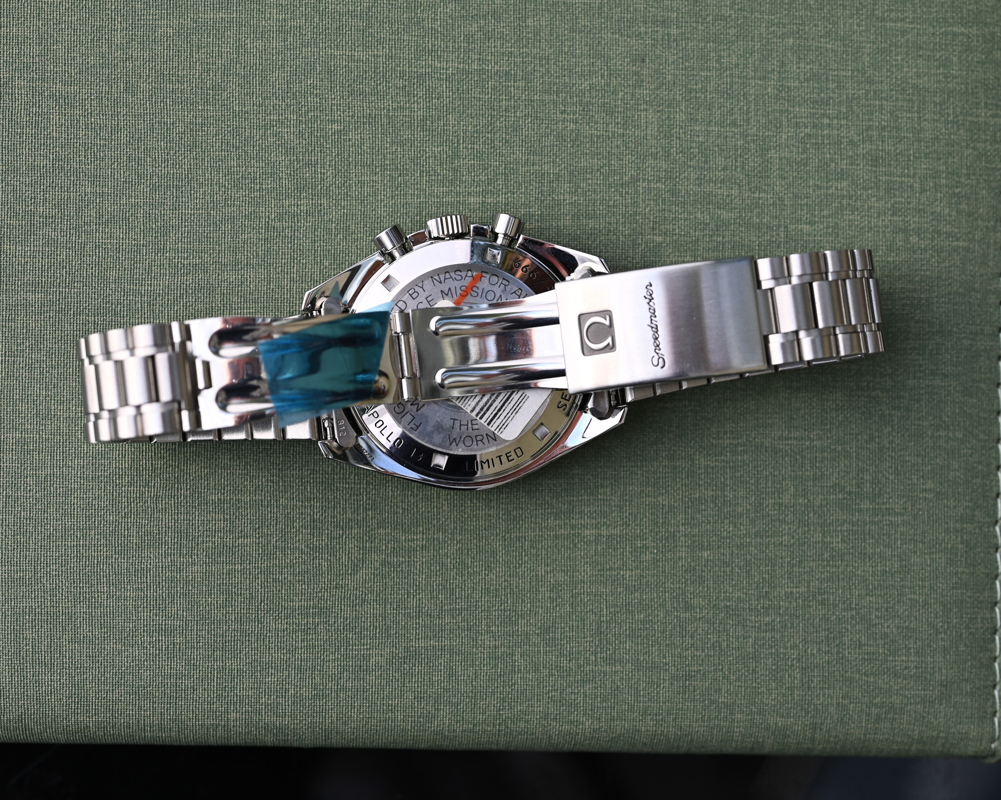 Hier kommt etwas wirklich unglaubliches: Eine verklebte, ungetragene Speedmaster Apollo 13 ltd. die 30 Jahre beim Konzessionär im Tresor gelegen hat 😊 Was zudem noch verwunderlich ist, bei allen Diskussionen wie Patina entsteht, dass das Lume des Zifferblattes eine sehr schöne, gleichmäßige und warme Patina bekommen hat, obwohl oder gerade weil sie nie ans Tageslicht kam.