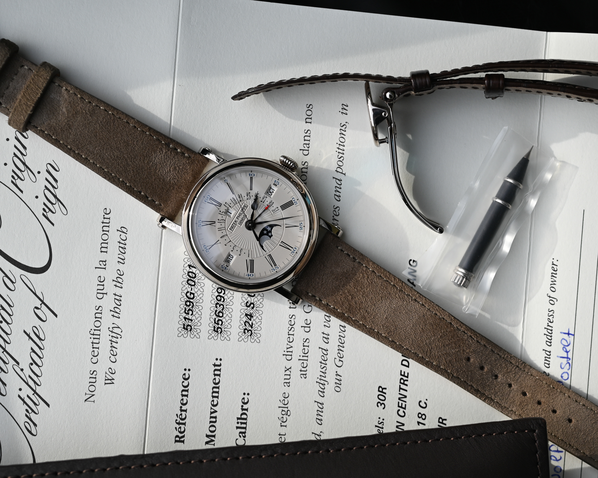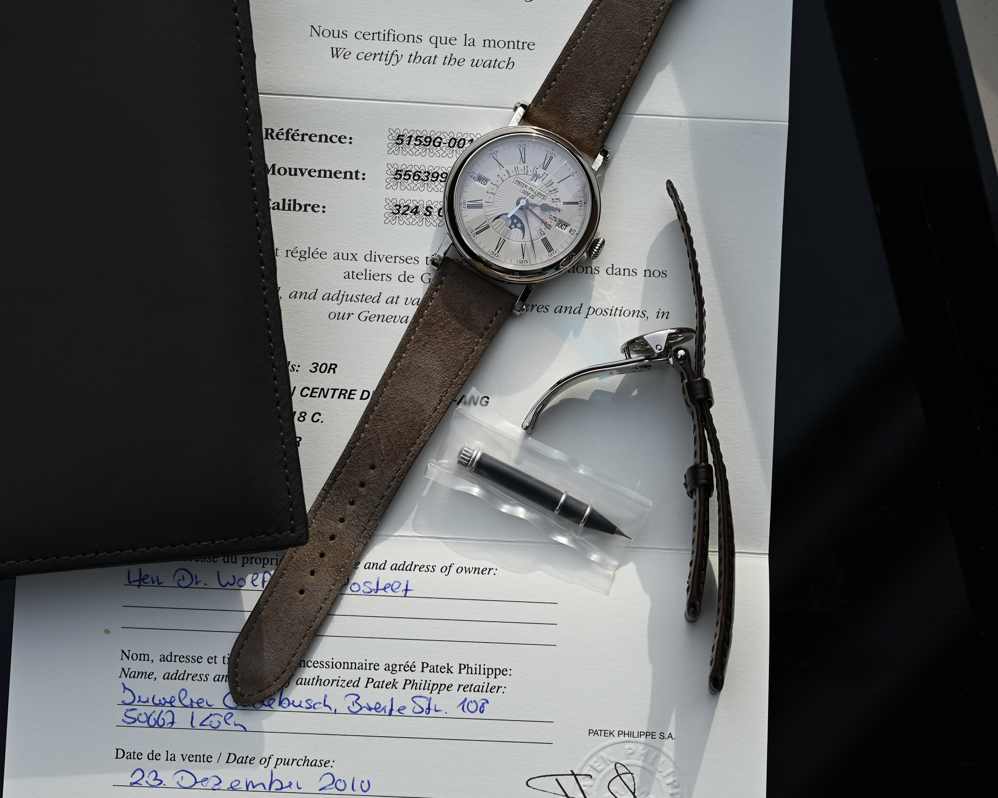 Durch den aktuellen Patek-Philippe-Service befindet sich diese 5159G-001 technisch wie optisch in hervorragendem Zustand. Ein klassischer und zugleich komplexer Zeitmesser, der sofort und sorgenfrei getragen werden kann.