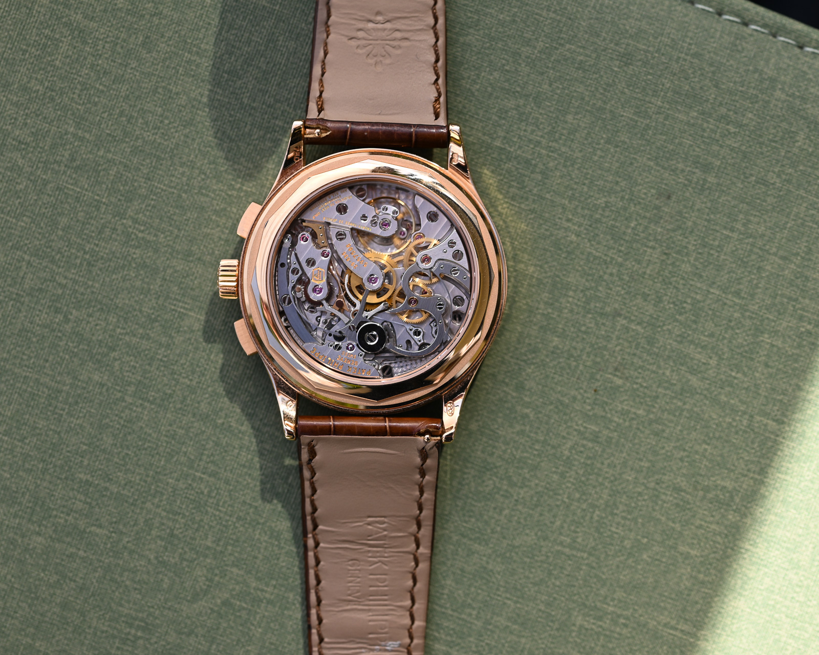 Das Zifferblatt ist ein absoluter Blickfang: applizierte Breguet-Ziffern in Rotgold verleihen ihm eine beeindruckende Tiefe und Dreidimensionalität – ein Detail, in das man sich regelrecht verlieben kann. Auch die Rückansicht überzeugt: durch den Saphirglasboden zeigt sich das fein verzierte Patek Kaliber CH 29-535 PS, ein echtes Kunstwerk der Uhrmacherei.