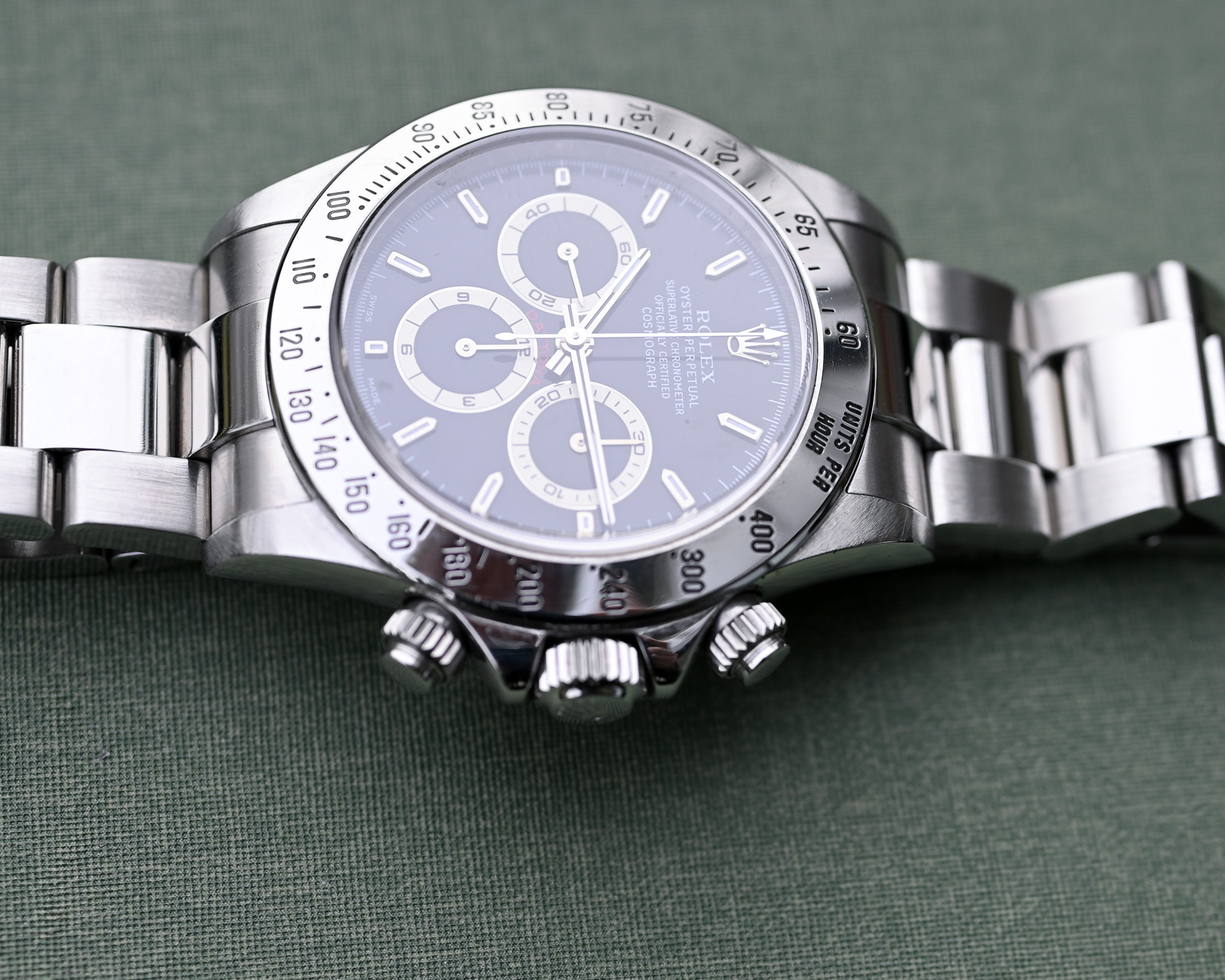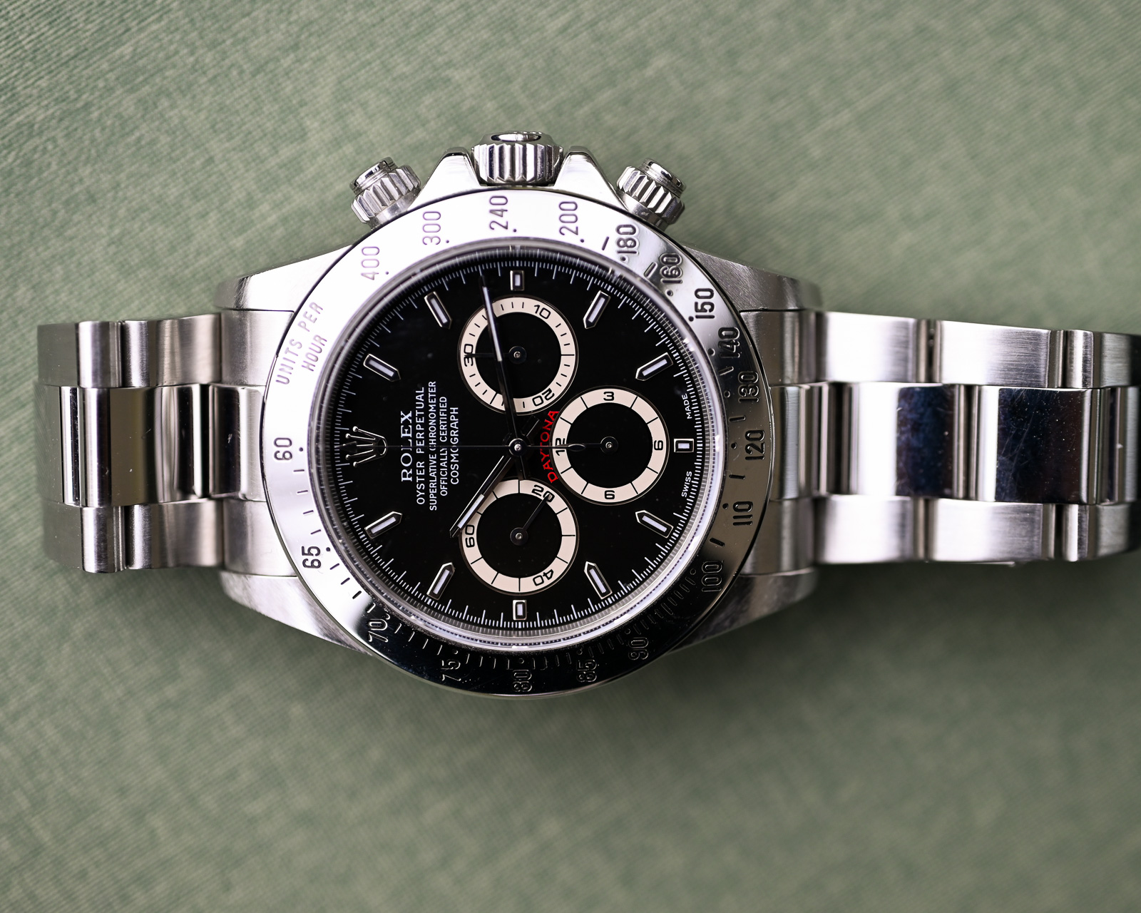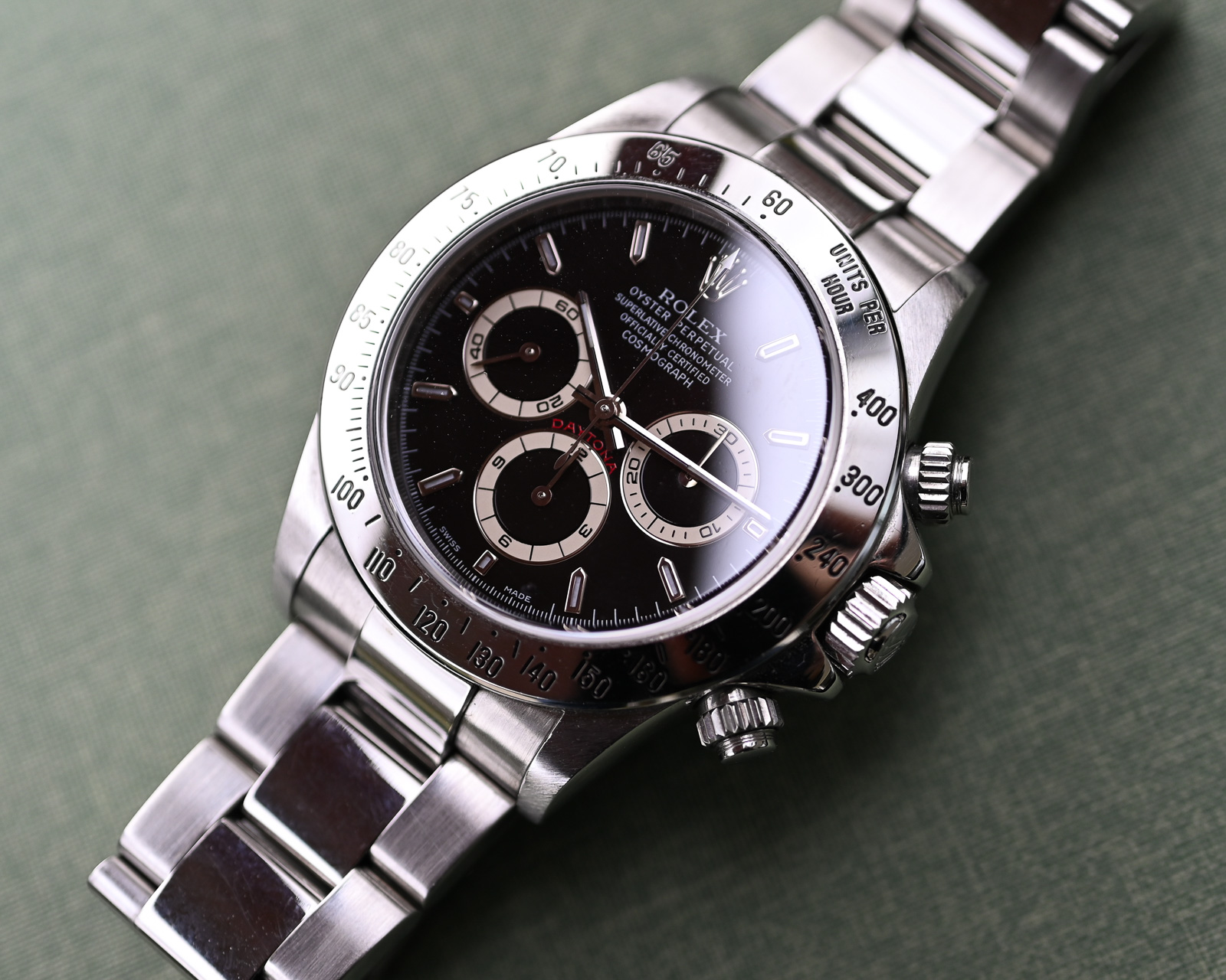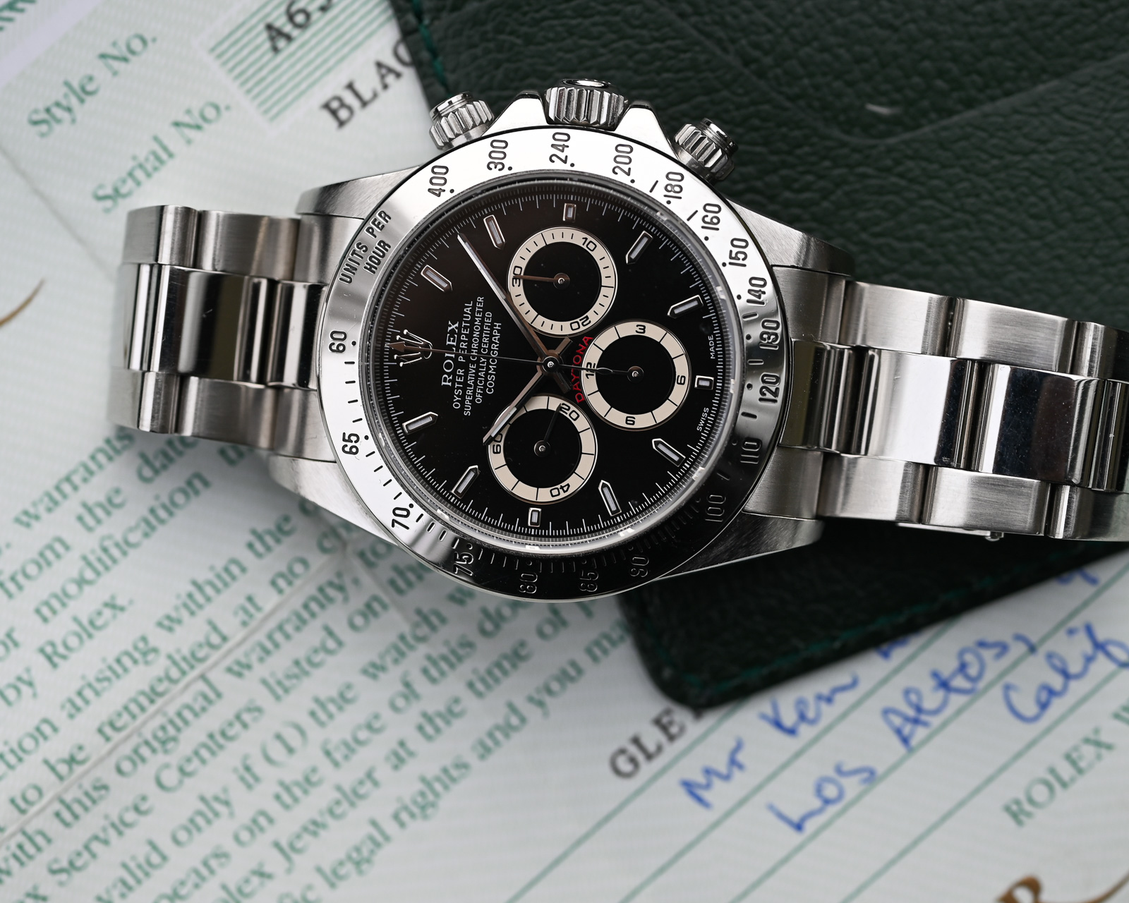 Ja es gibt sie: die schwarzen Zifferblätter der A Serie, dessen Totalisatoren eine wunderschöne cremefarbene Patina aufweisen.