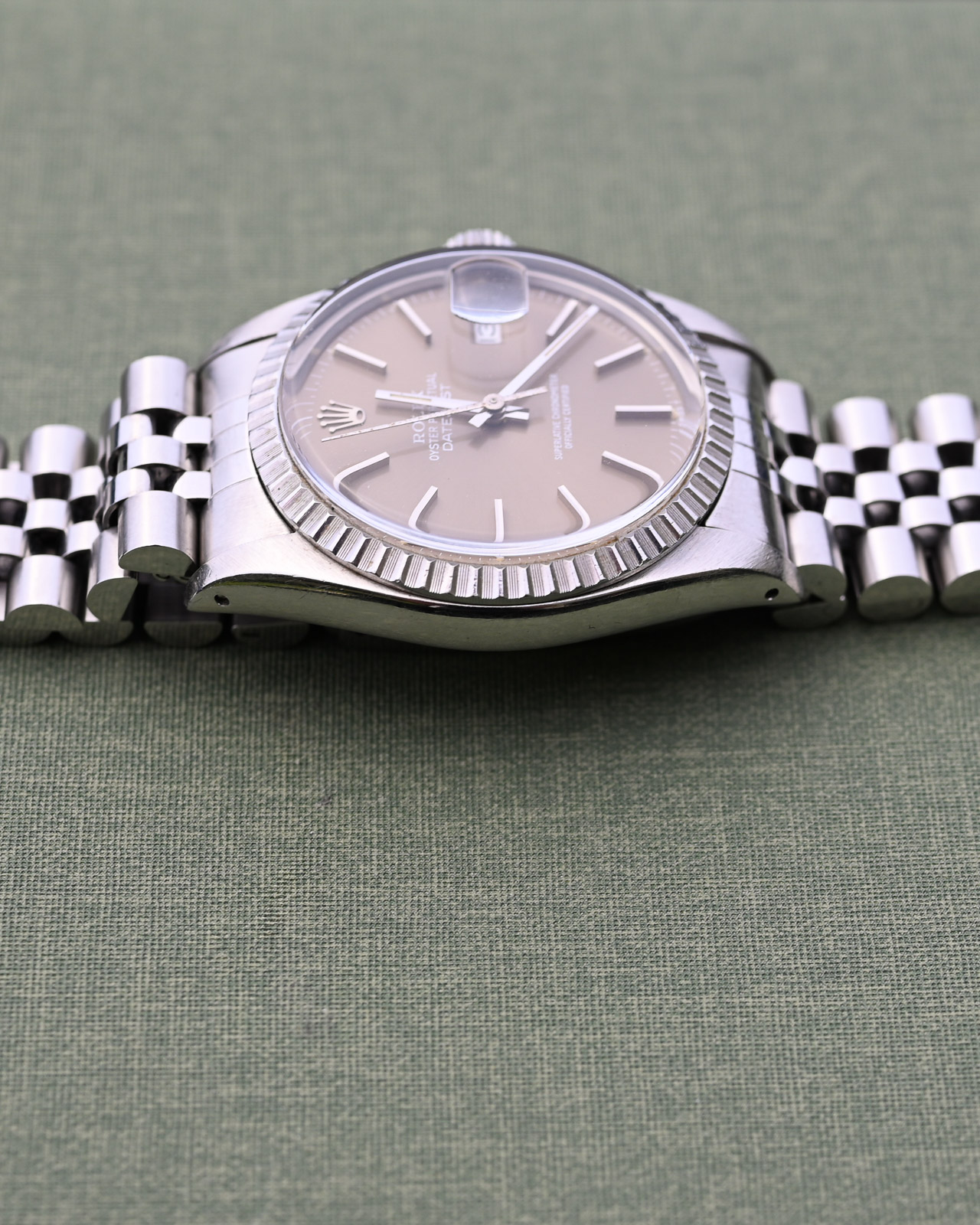 Eine unpolierte Datejust 16030 aus 1984 mit dem seltenem Taupe Blatt.