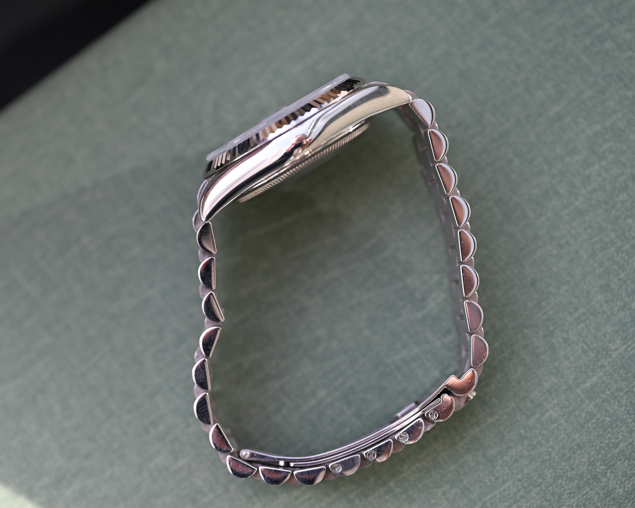 Diese Day-Date vereint ikonisches Design, seltenes Material und makellosen Zustand – ein Zeitmesser, der nicht nur getragen, sondern bewundert wird.