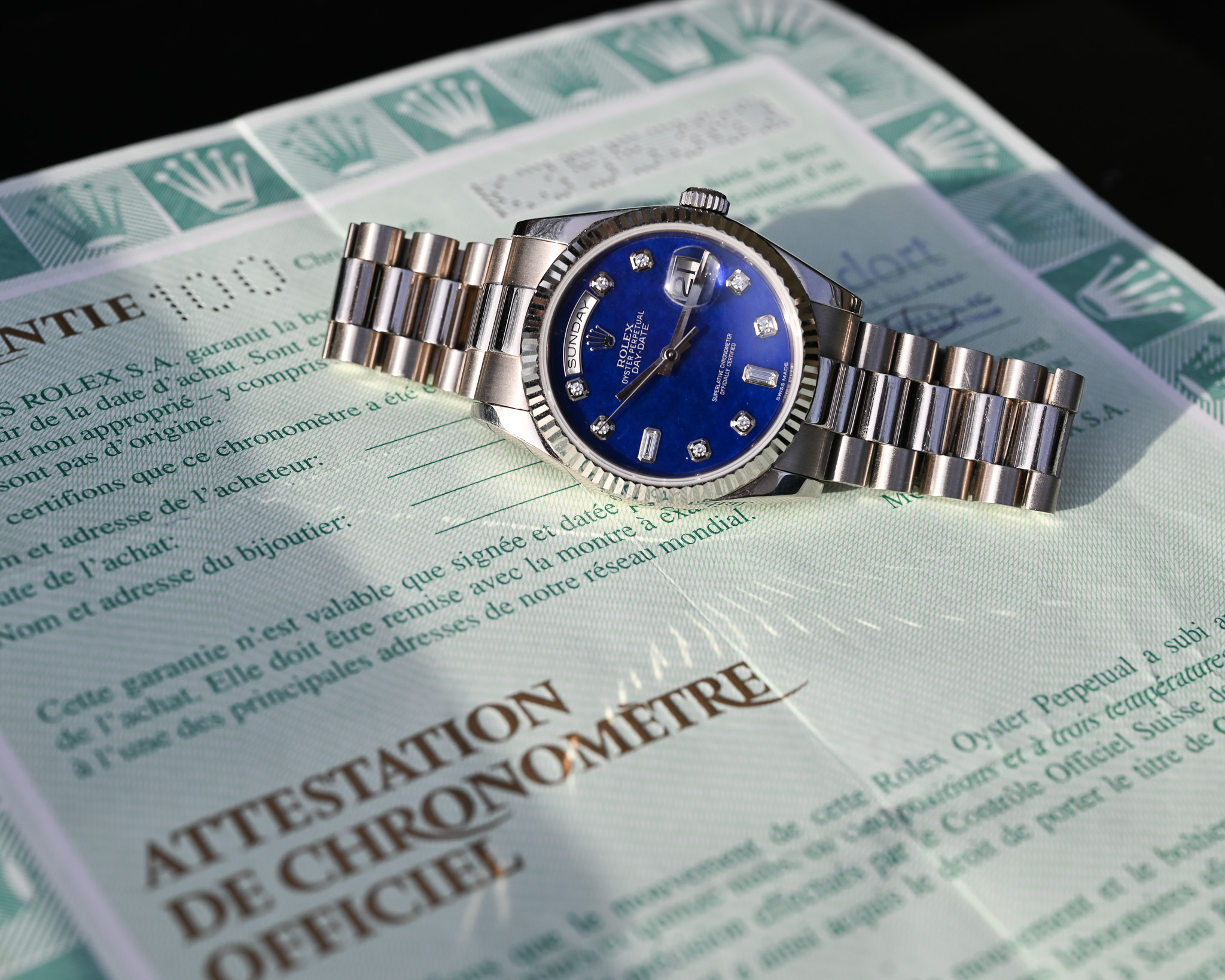 Rolex Day-Date 118239 in Weißgold – mit seltenem „Lapislazuli“ Steinblatt