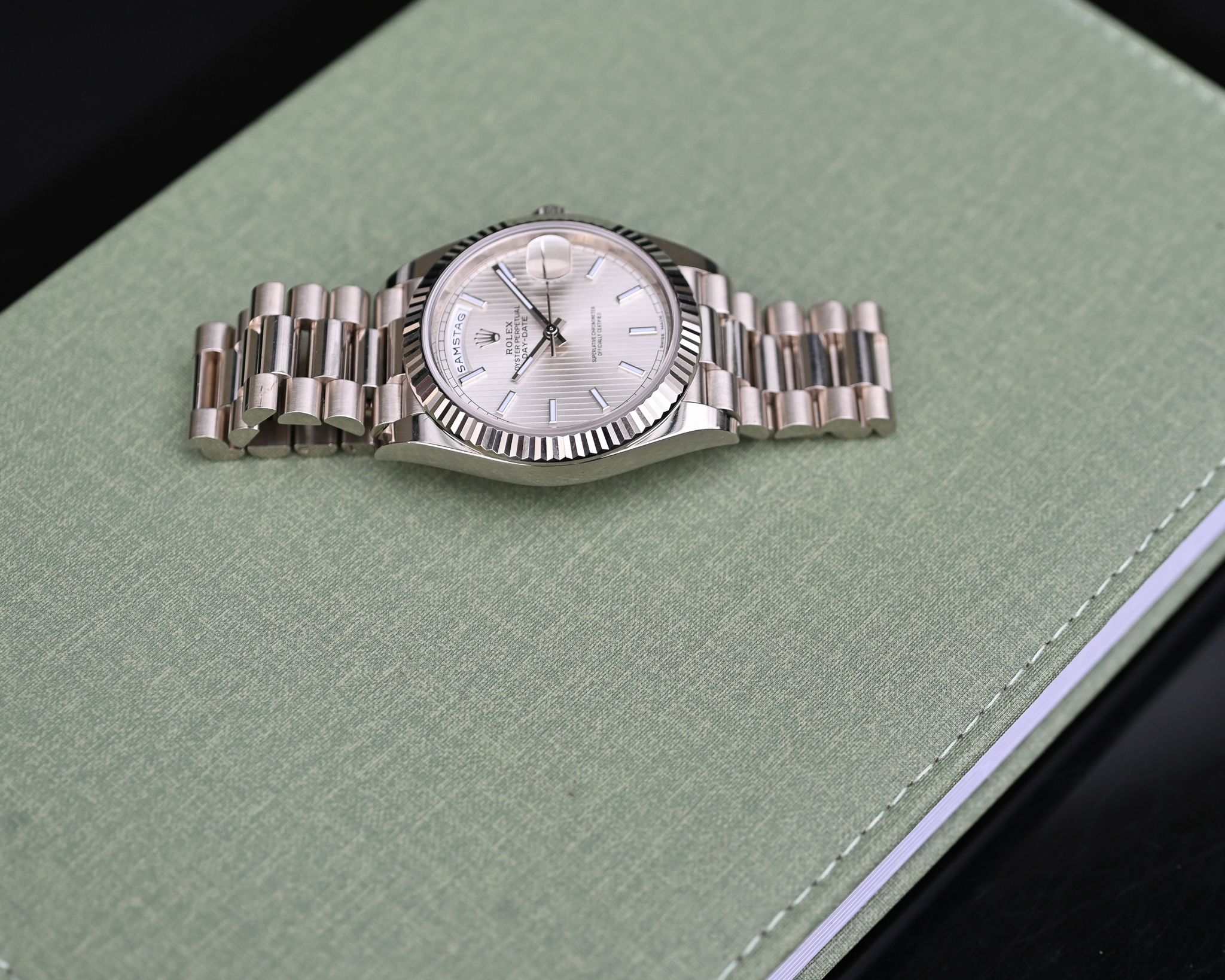 Die Day-Date 40 kombiniert zeitlose Ästhetik mit der unverwechselbaren Präsenz des President-Armbandes und verkörpert wie kaum ein anderes Modell den Inbegriff von Luxus, Klasse und Understatement.