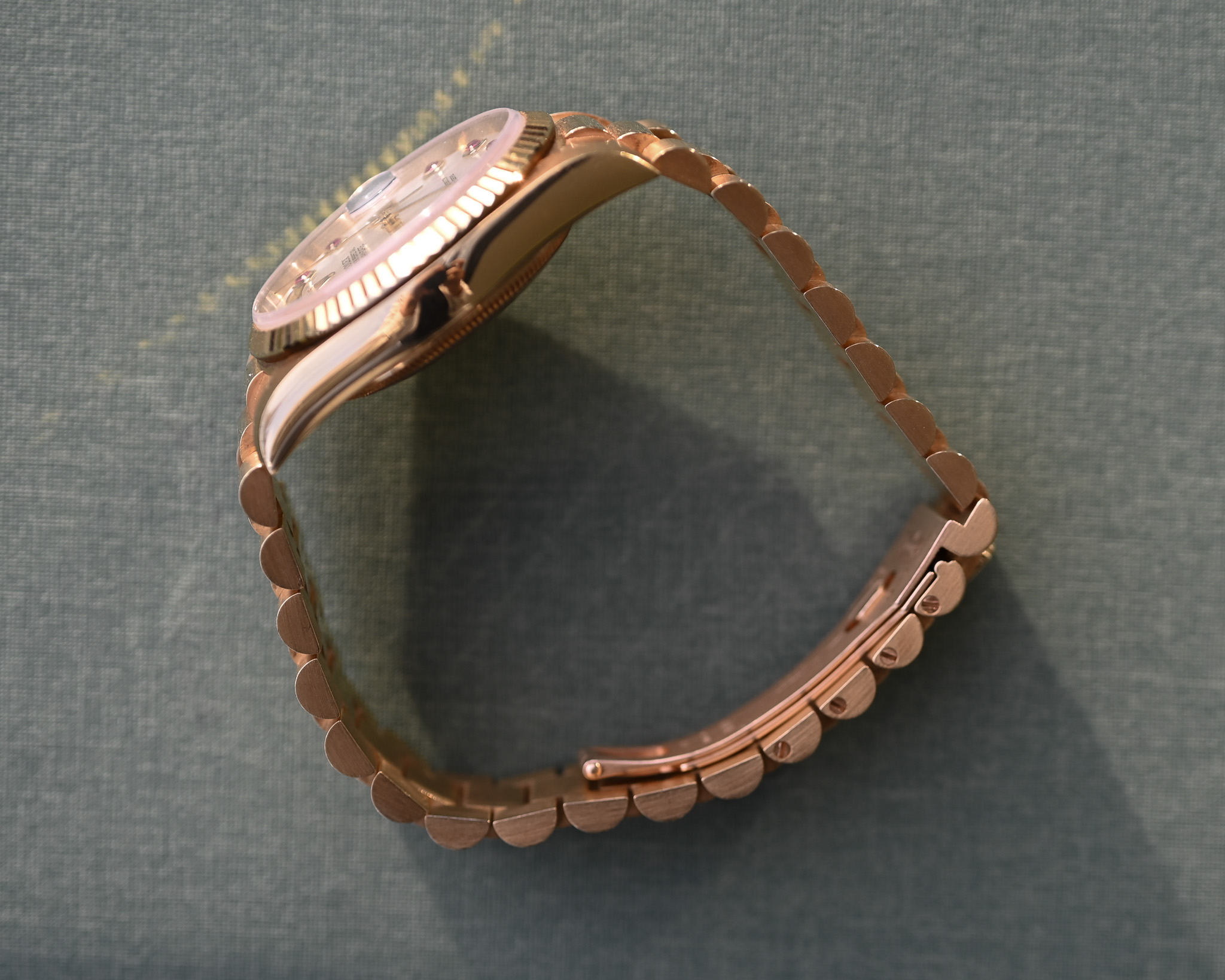 Die Uhr befindet sich in einem nahezu neuwertigen Zustand. Sowohl Gehäuse als auch President-Band präsentieren sich hervorragend erhalten, ohne nennenswerten Spannungsverlust – ein Zustand, wie man ihn nur äußerst selten findet. Technisch wie optisch lässt dieses Exemplar keinerlei Wünsche offen.