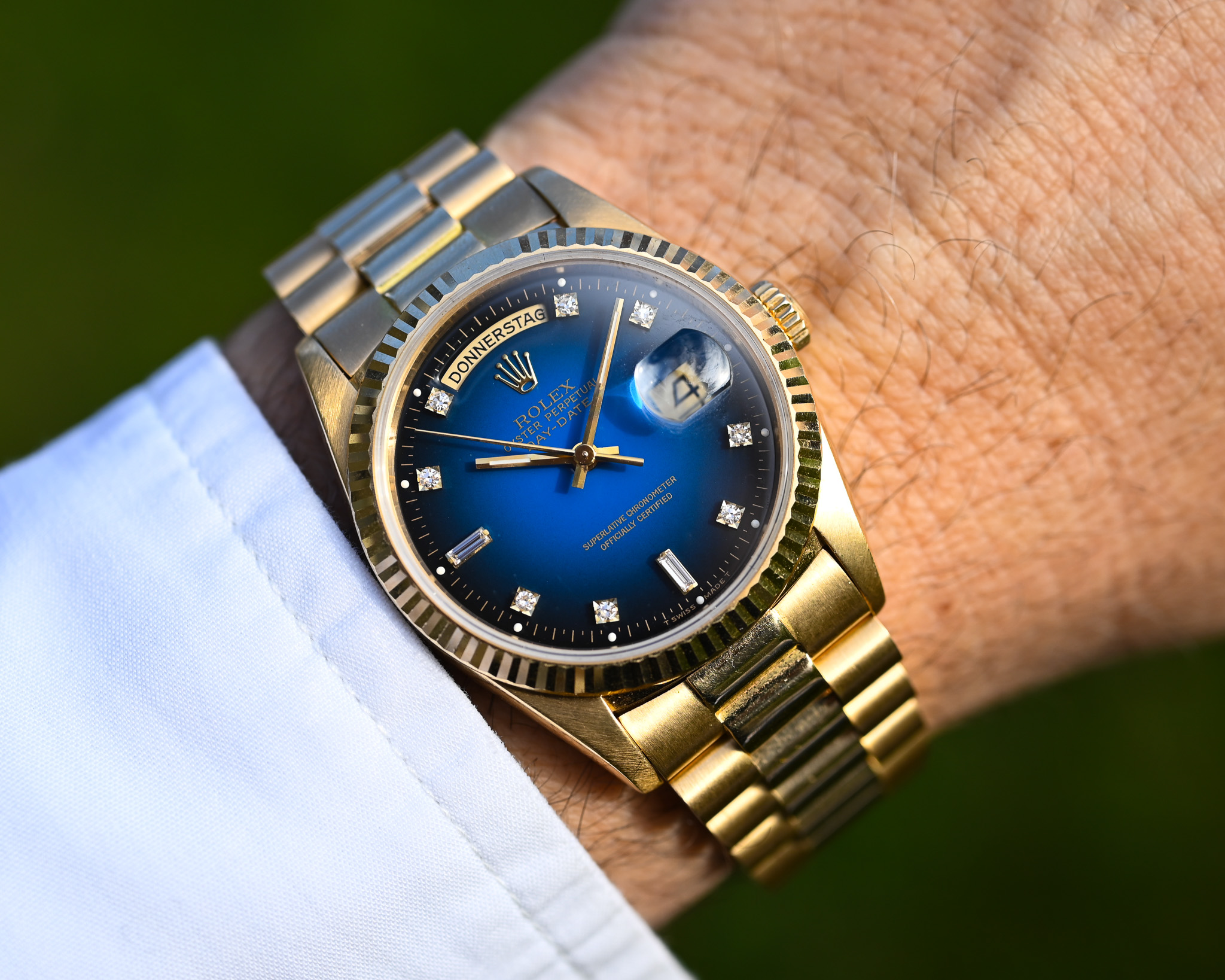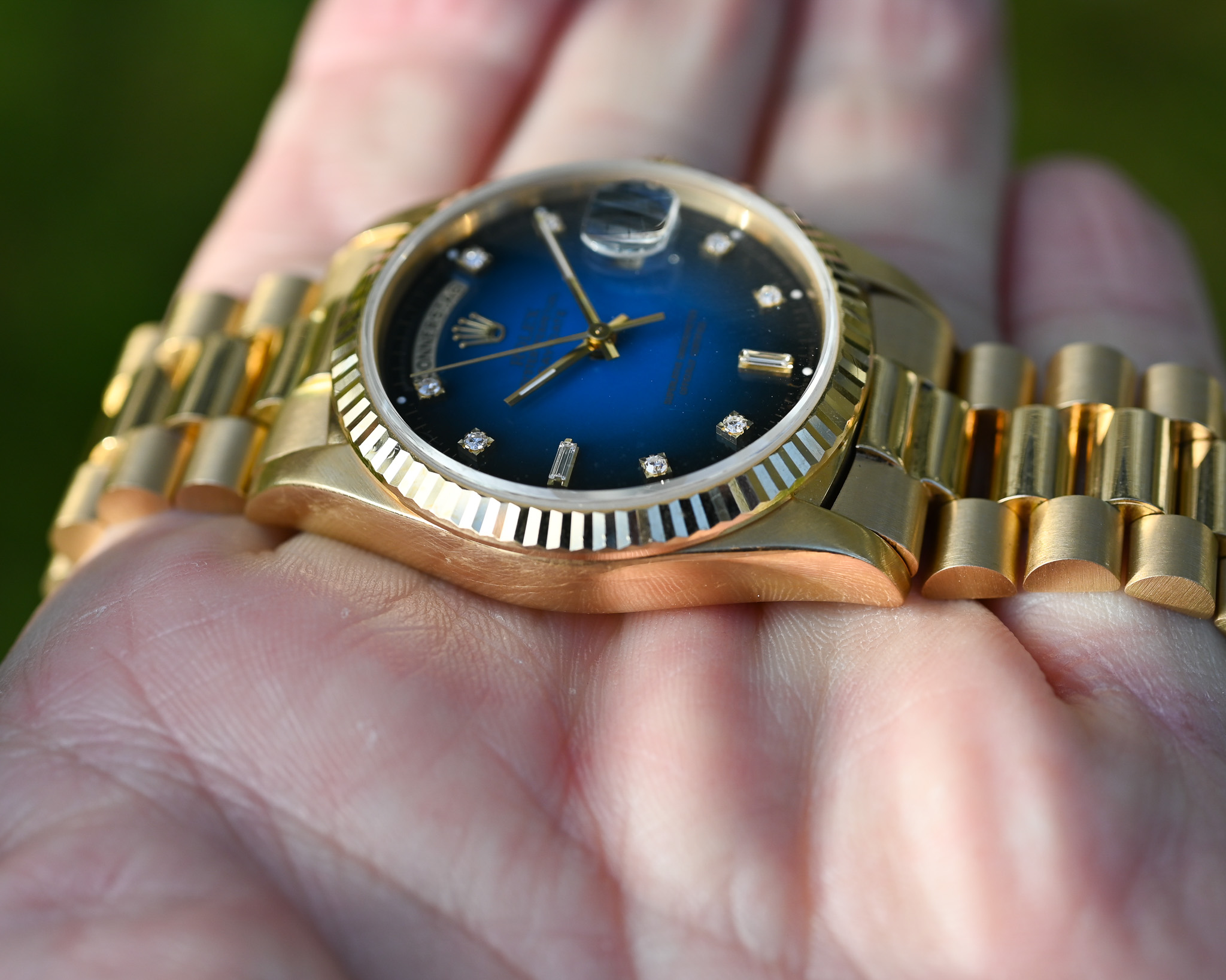 Rolex Day-Date Ref. 18238 – Blaues Vignette Diamond Dial – Fullset – Perfekter Zustand