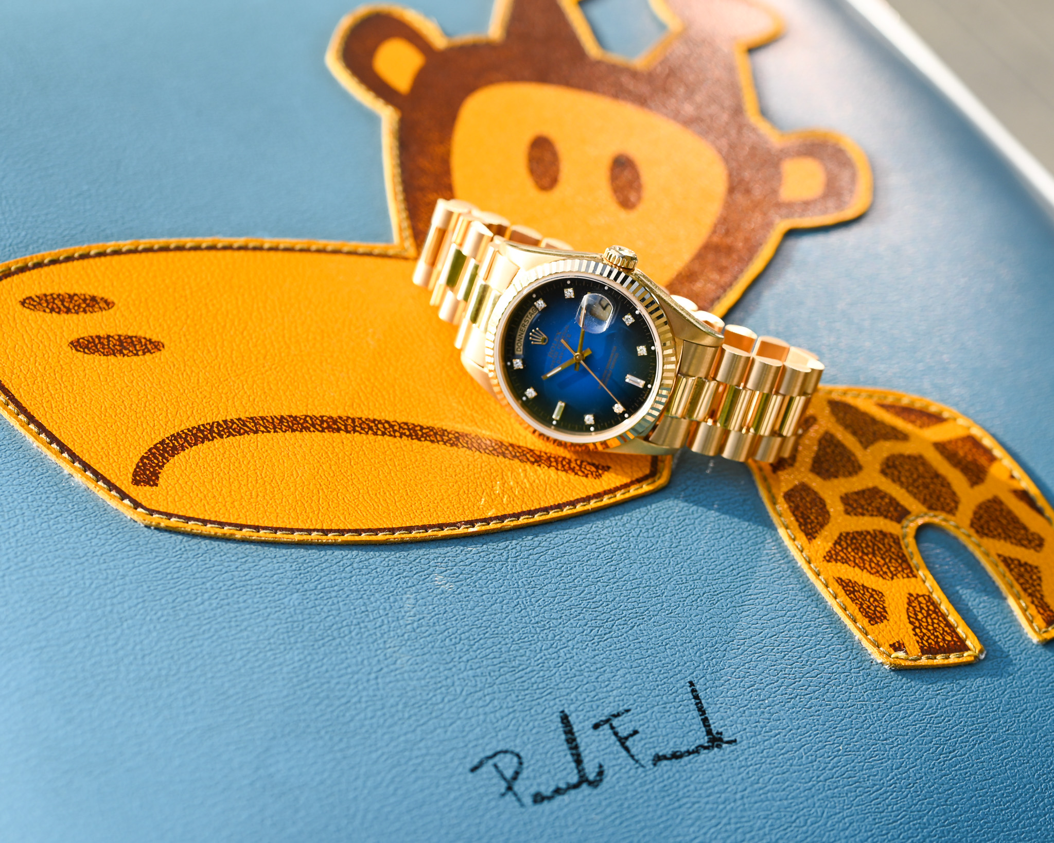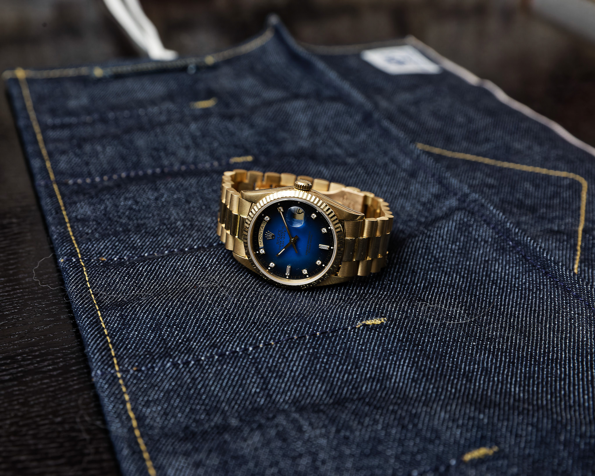 Rolex Day-Date Gelbgold 18238 „Vignette – Blue“ mit Box und Papieren