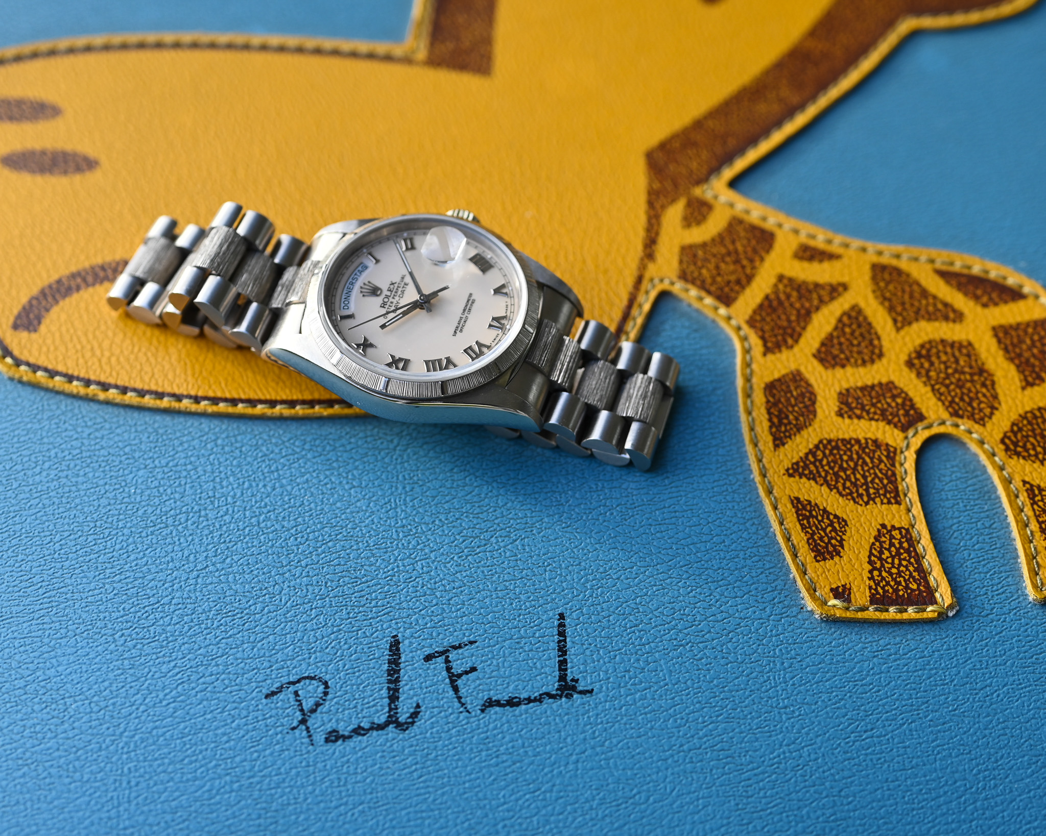 Eine außergewöhnliche Day-Date für Kenner und Sammler, die durch ihr seltenes Zifferblatt, den perfekten Zustand und den vollständigen Lieferumfang begeistert – ein stilvolles und zugleich exklusives Statement auf höchstem Niveau.
