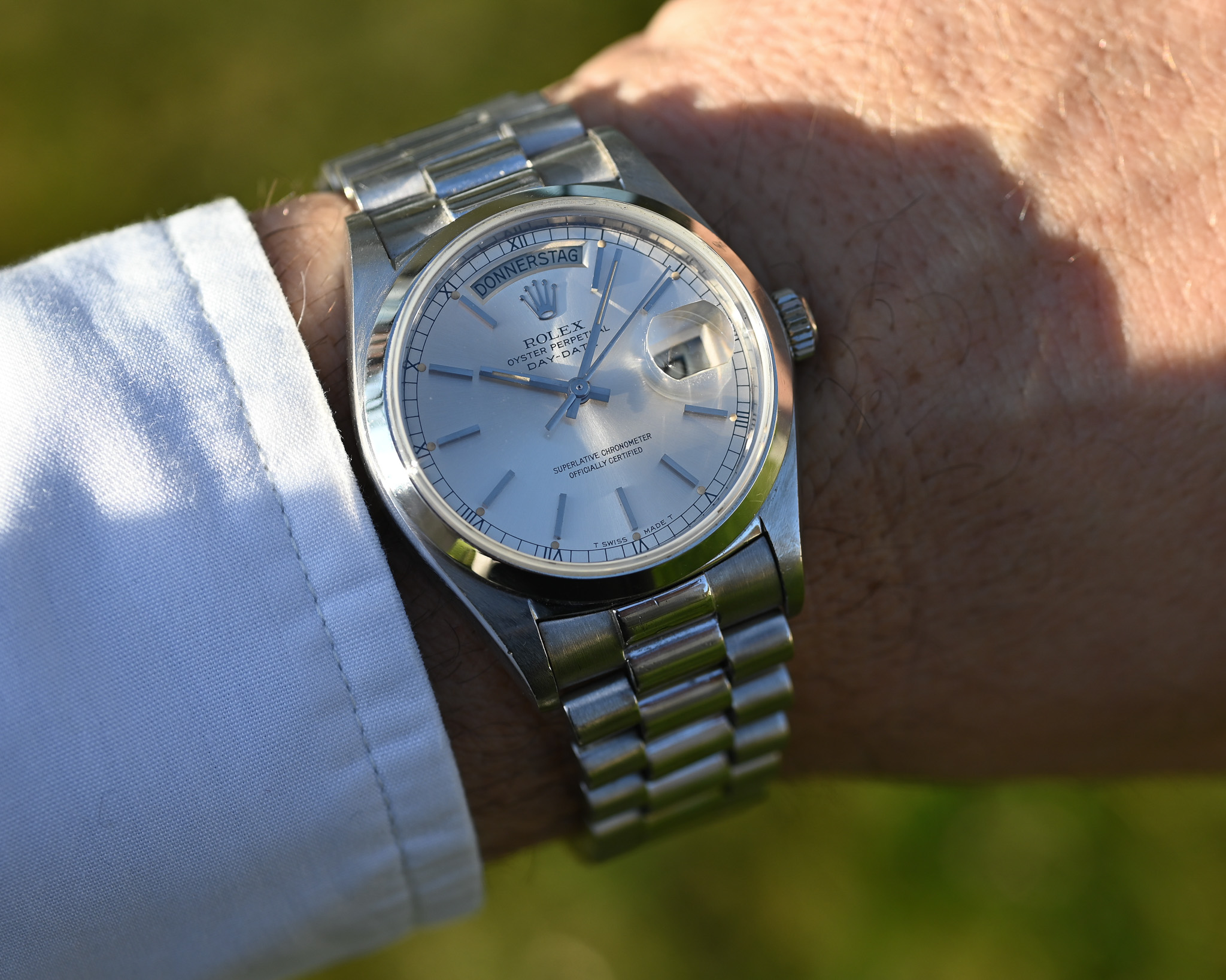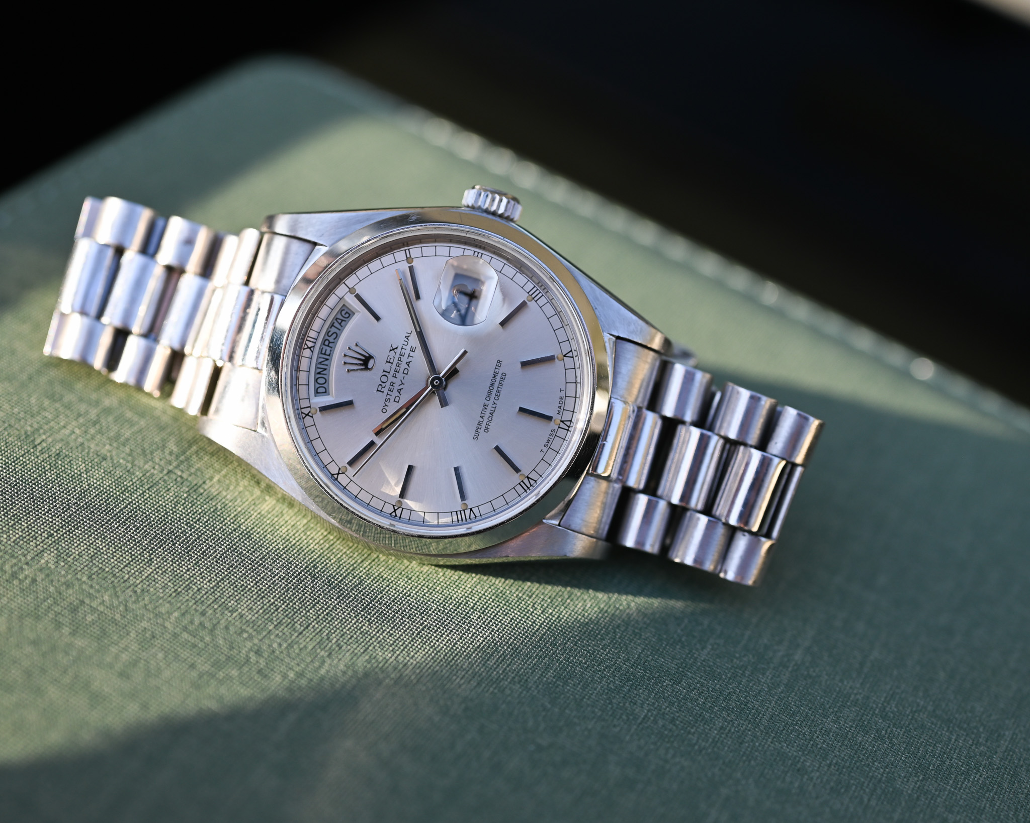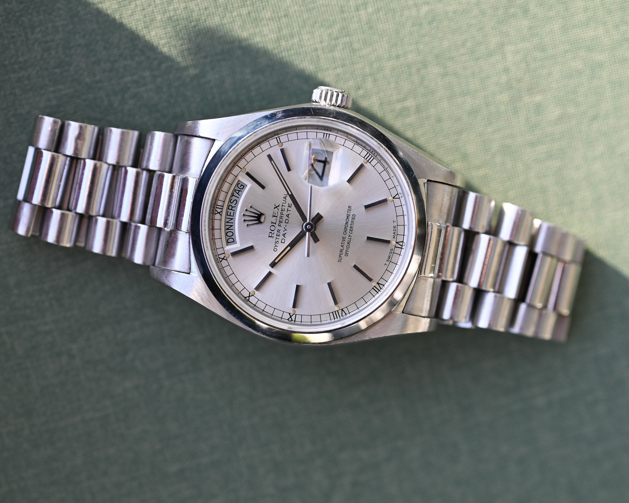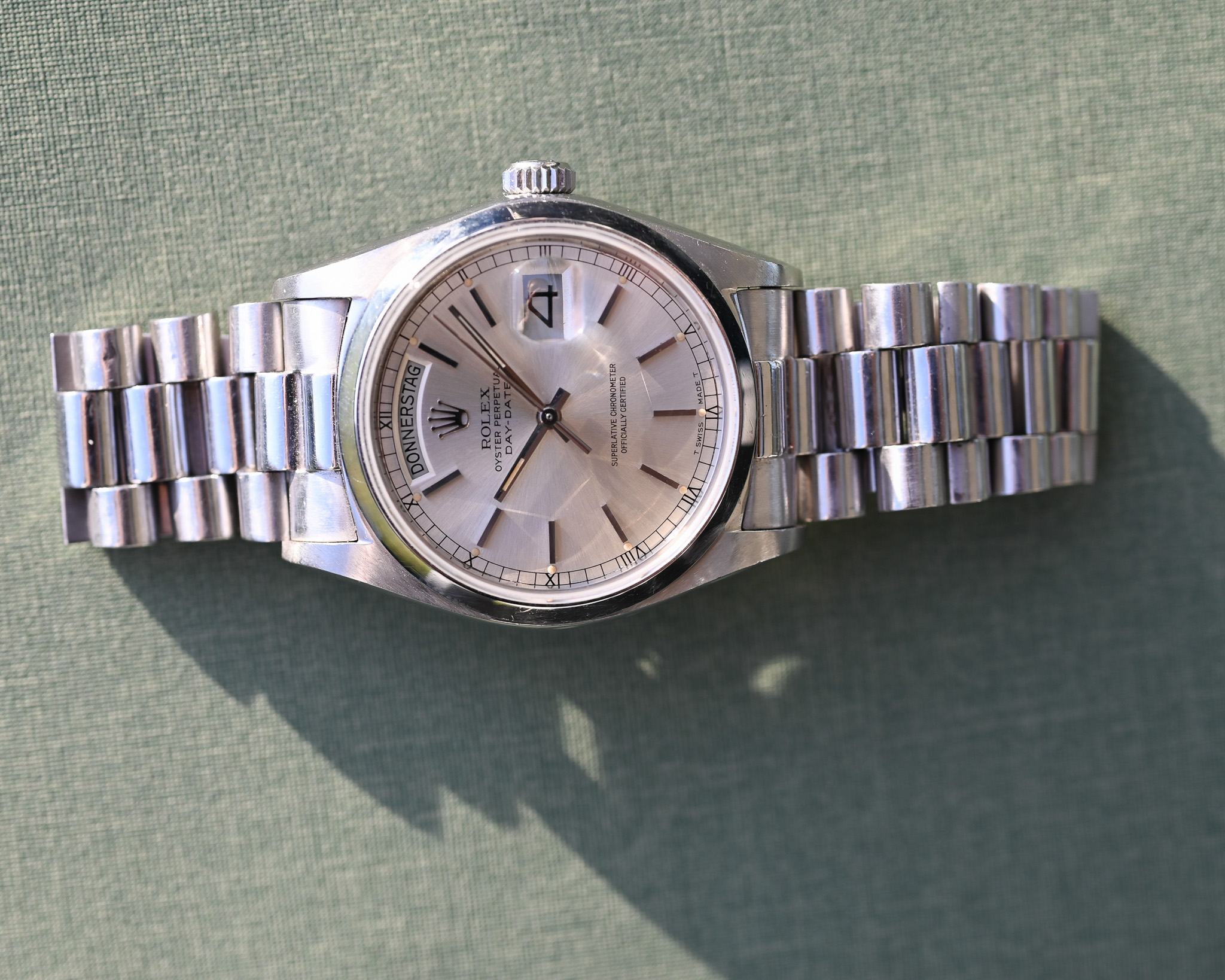 Rolex Day-Date Platin „Silver Surfer“ – Strahlendes silbernes Zifferblatt