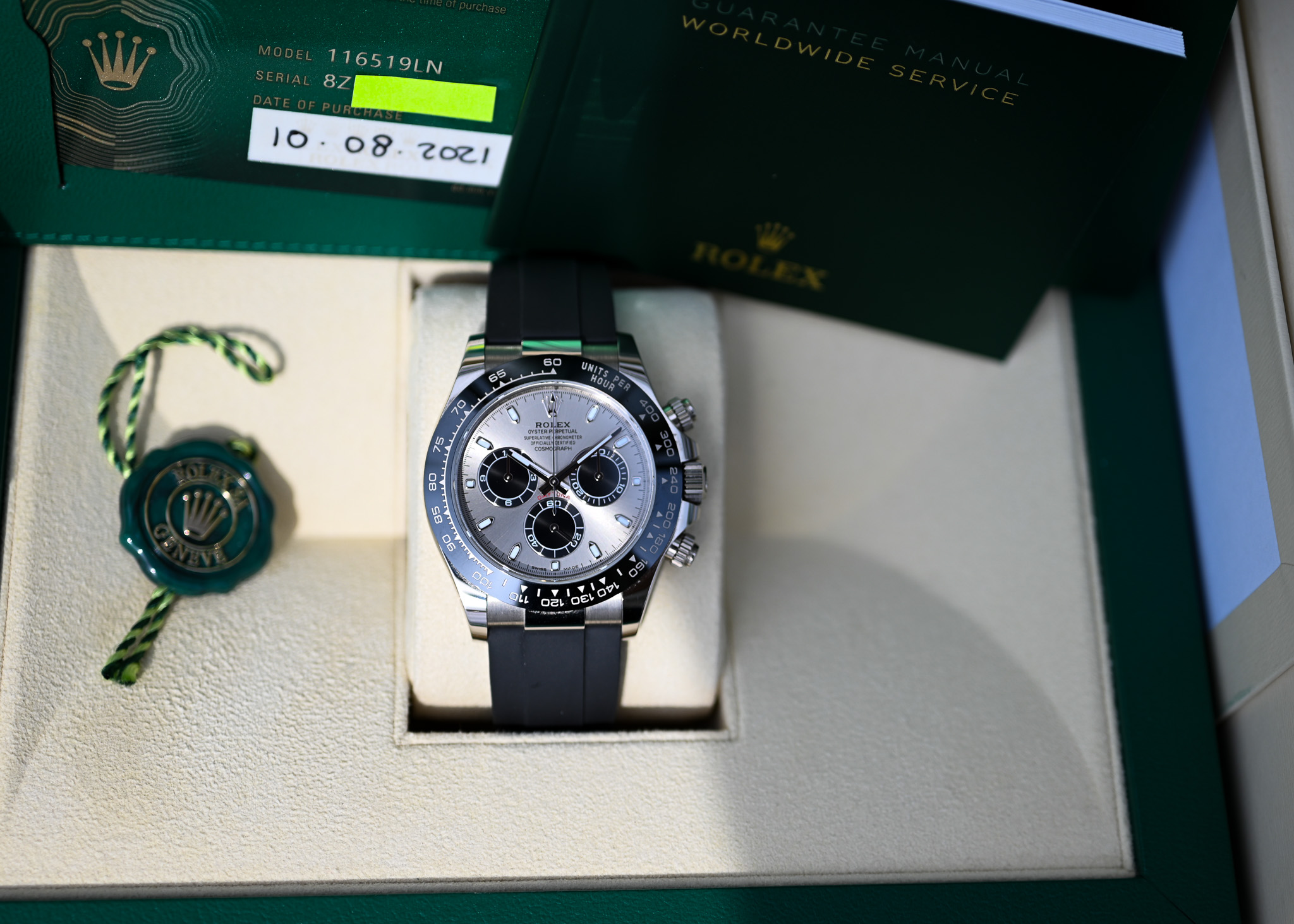 Für mich einer der schönsten Daytona und heute bereits ein Klassiker; die Oysterflex 116519LN mit dem beliebtem Pandablatt aka Ghostdial.