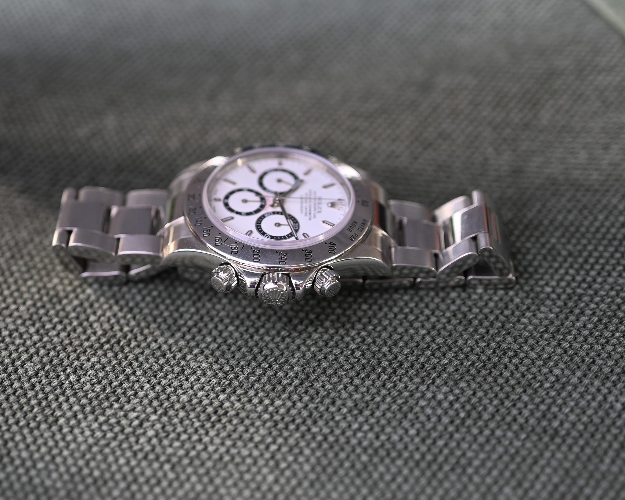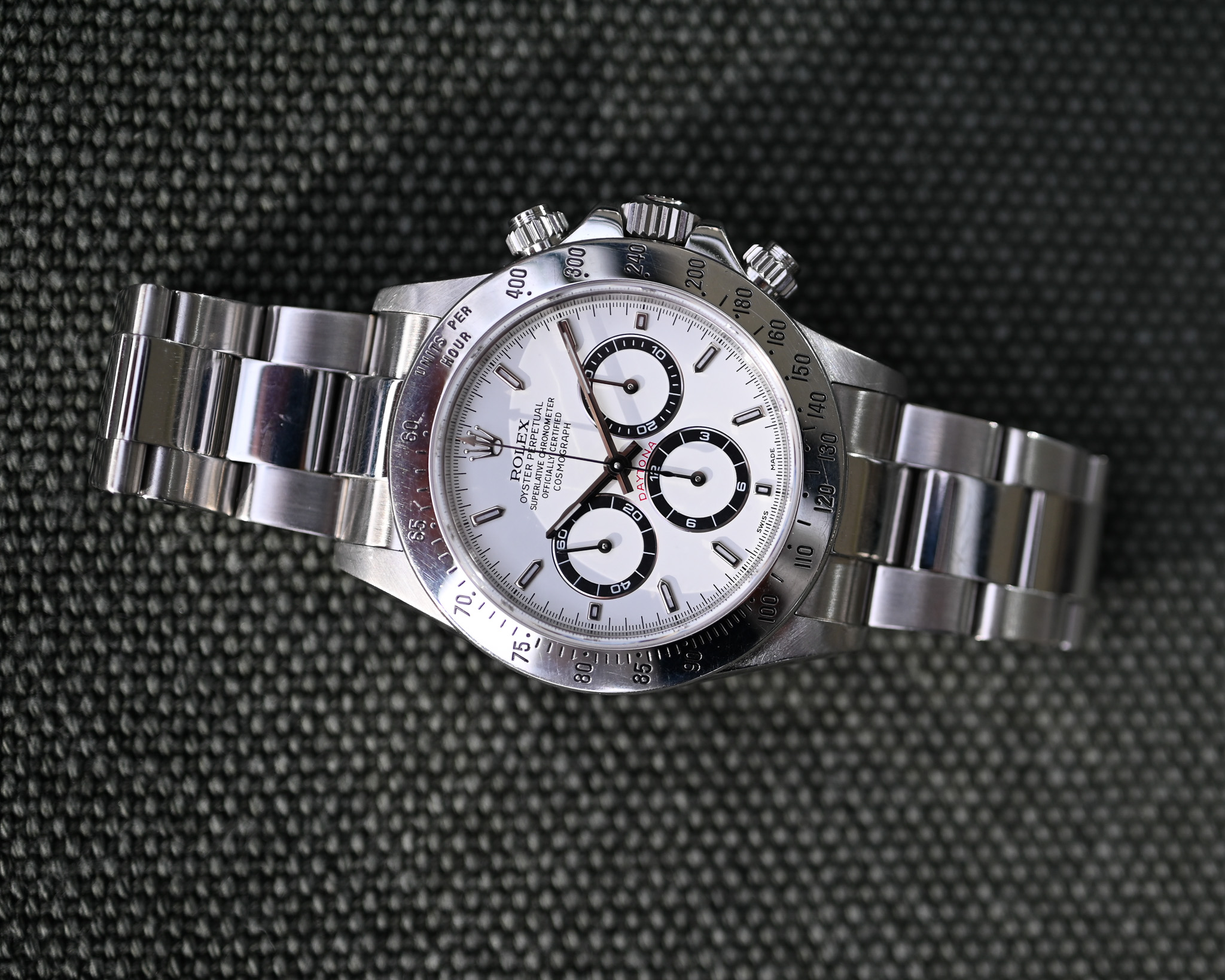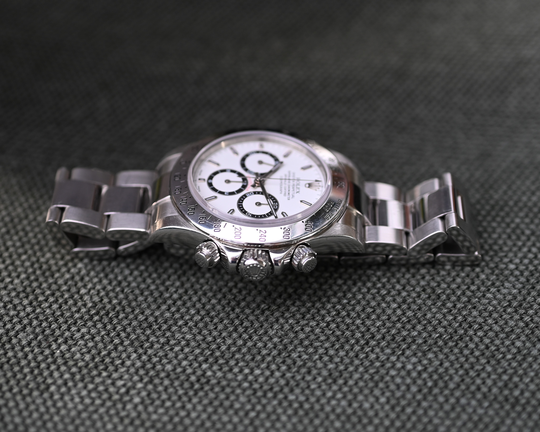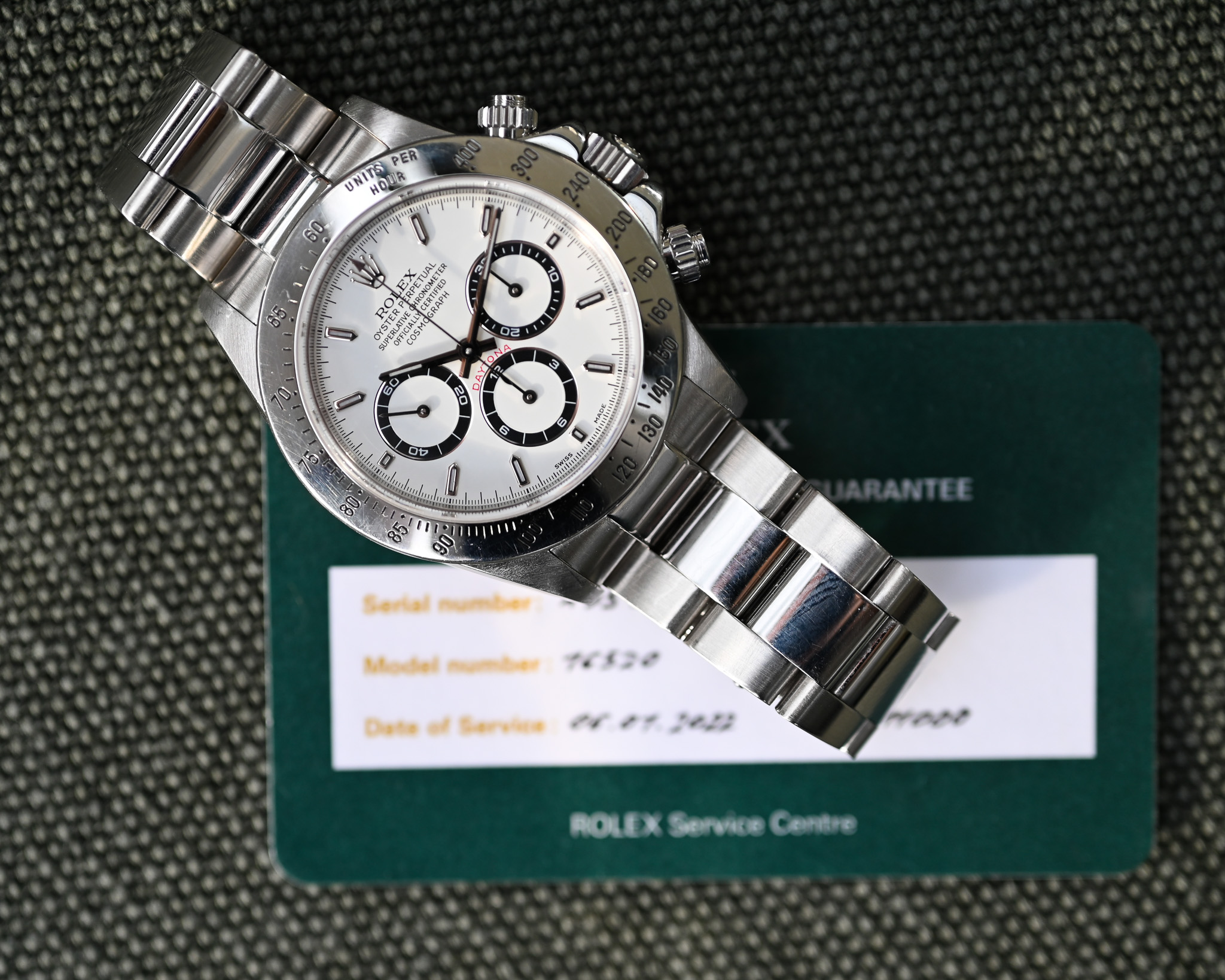 Eine Rolex Daytona 16520 in unpoliertem Topzustand mit frischem Rolex-Service – eine seltene Gelegenheit für Sammler und Liebhaber, die Wert auf Originalität, Substanz und belegte Wartung legen. Ein Klassiker mit stetig wachsender Bedeutung innerhalb der Rolex-Historie.