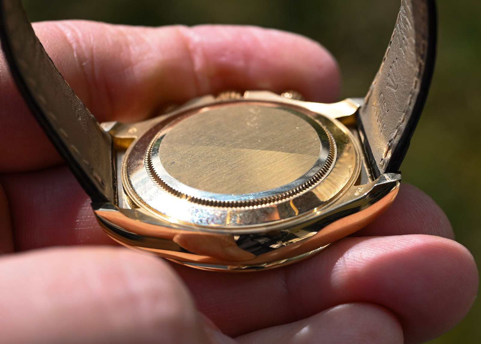 Die Uhr wurde von einem Künstler aufbereitet, da ihr Status „unpoliert mit einigen Gebrauchsspuren“, war und ich die Uhr nicht verhunzen wollte, habe ich sie einen Spitzenaufbereiter gegeben, der die Uhr aufgefrischt hat, ohne dass man Polierspuren sieht. Manch böser Bub, hätte sie wohl als unpoliert angeboten