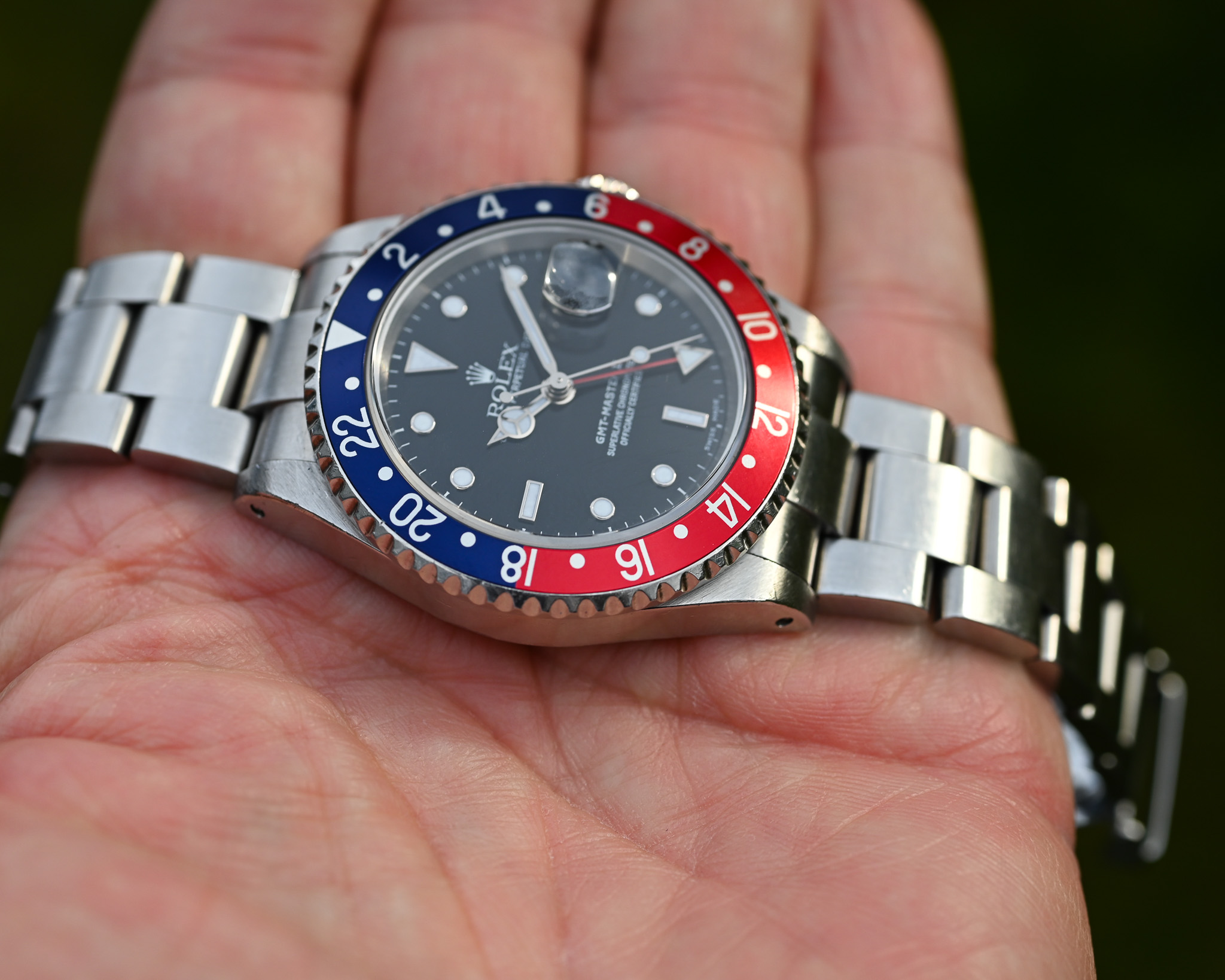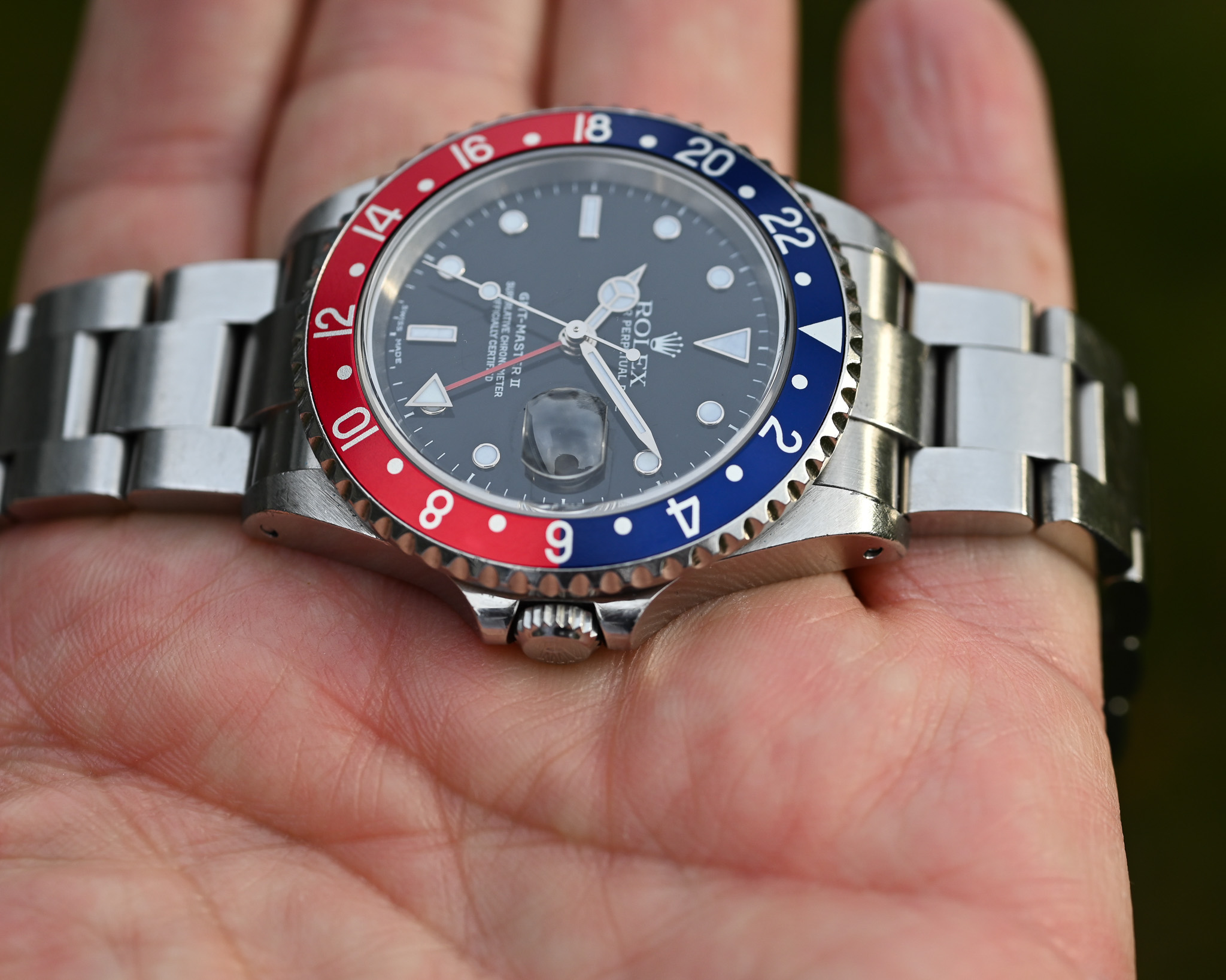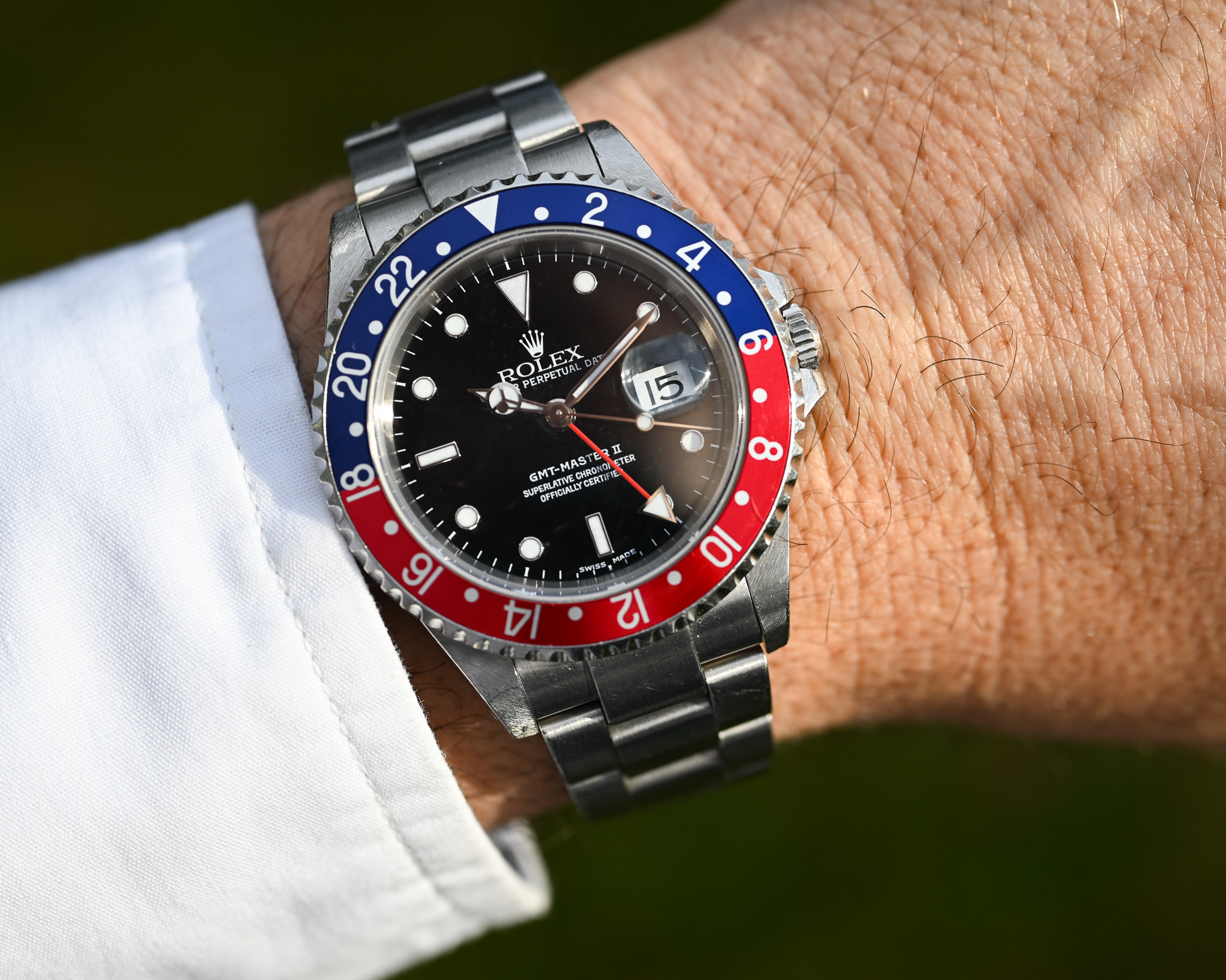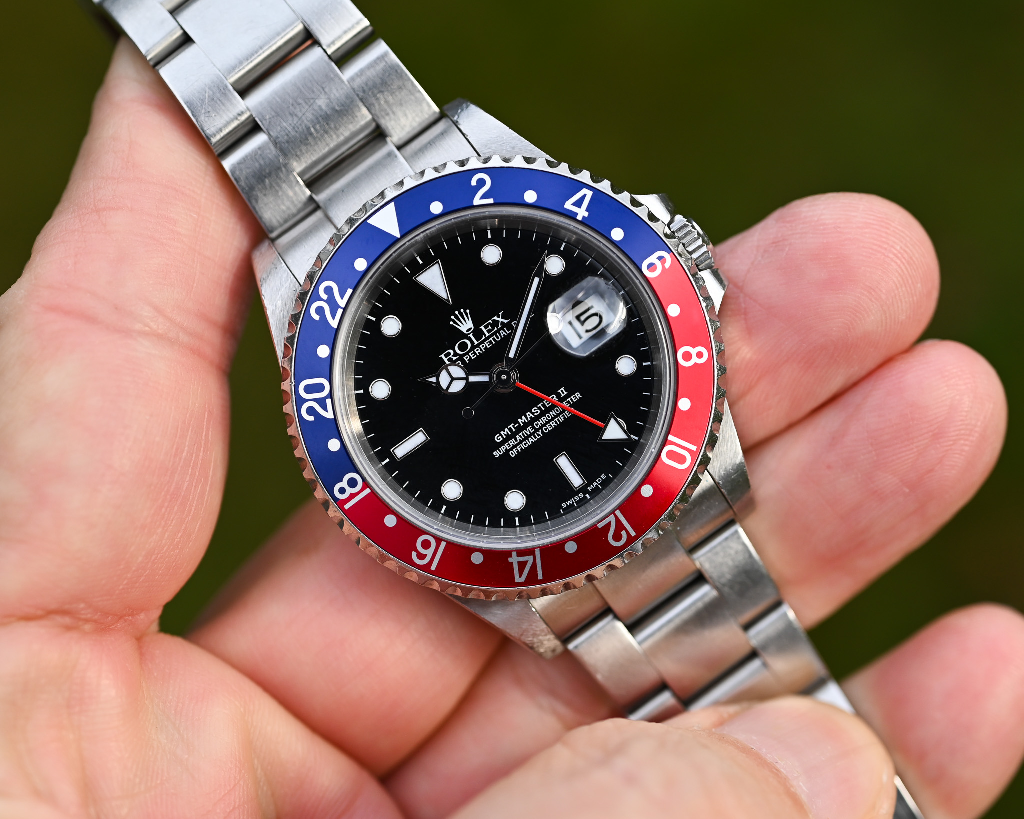 Eine Rolex GMT-Master II 16710 Pepsi in unpoliertem Zustand mit umfangreichem Originalzubehör – ein klassischer Neo-Vintage-Sportrolex mit hoher Nachfrage und nachhaltigem Sammlerpotenzial.