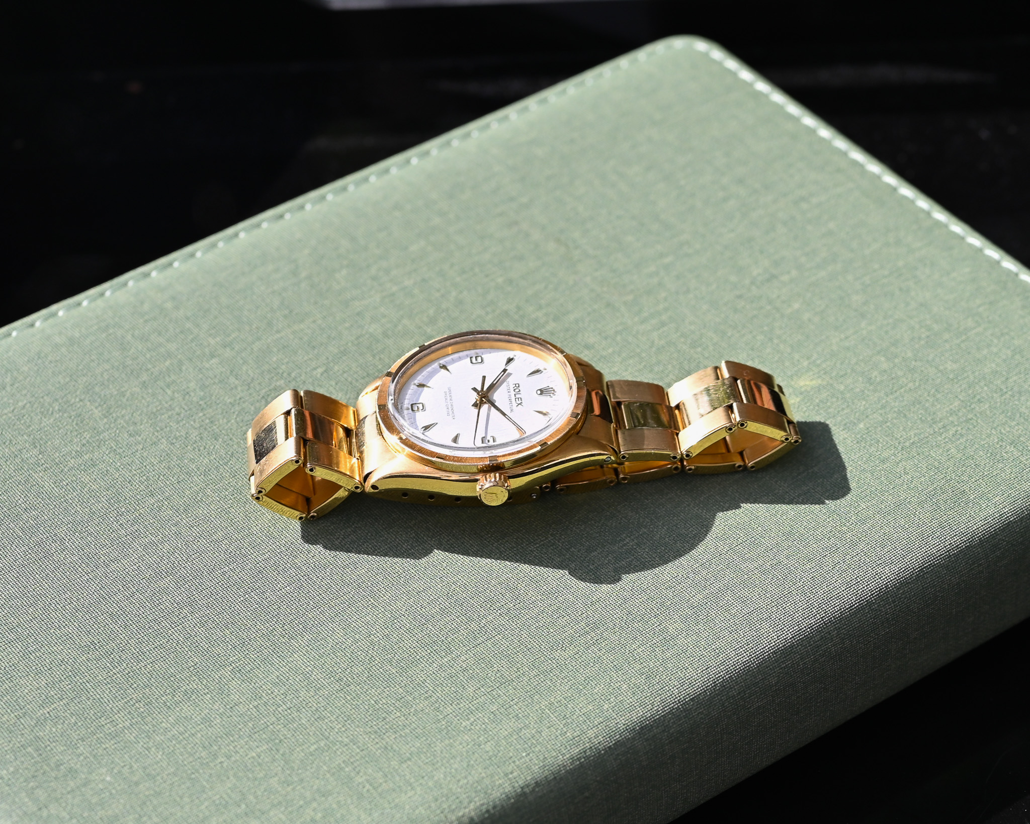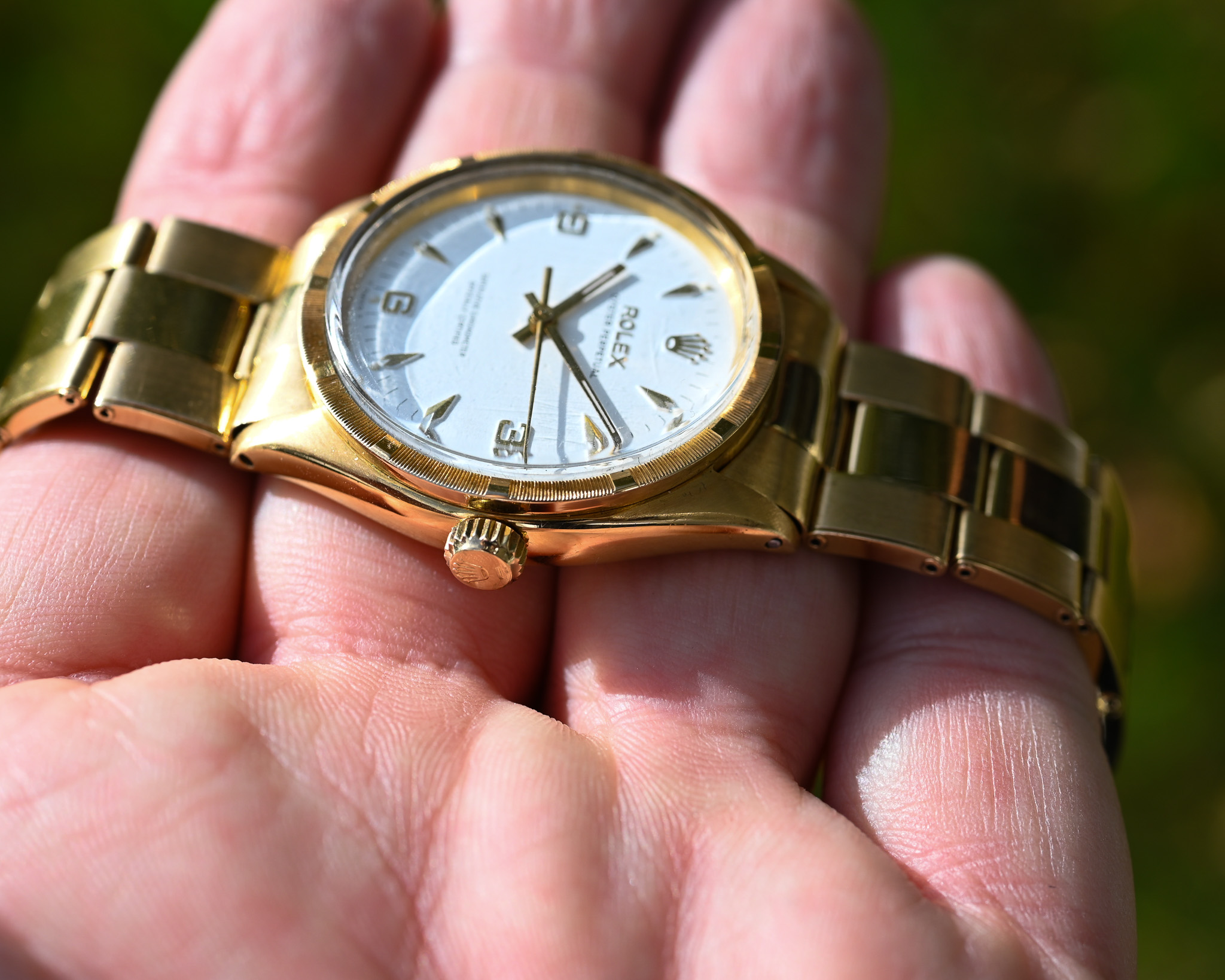 Heute darf ich euch eine wirklich stilvolle gelbgoldene Rolex präsentieren. Die Oyster Perpetual 6567 in Gelbgold.