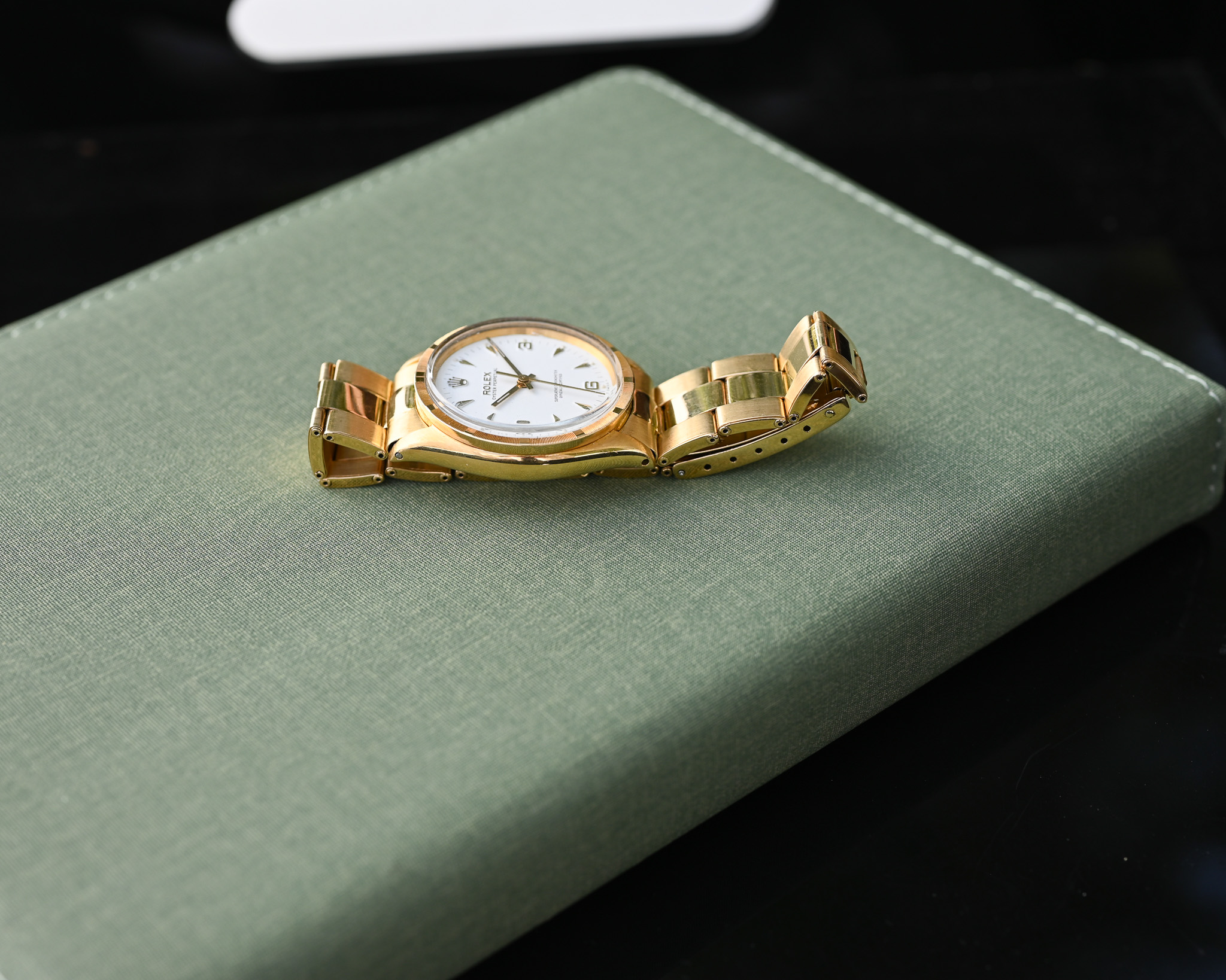 Rolex Oyster Perpetual 6567 in Gelbgold mit 7205 Goldband und Big Logo Schließe