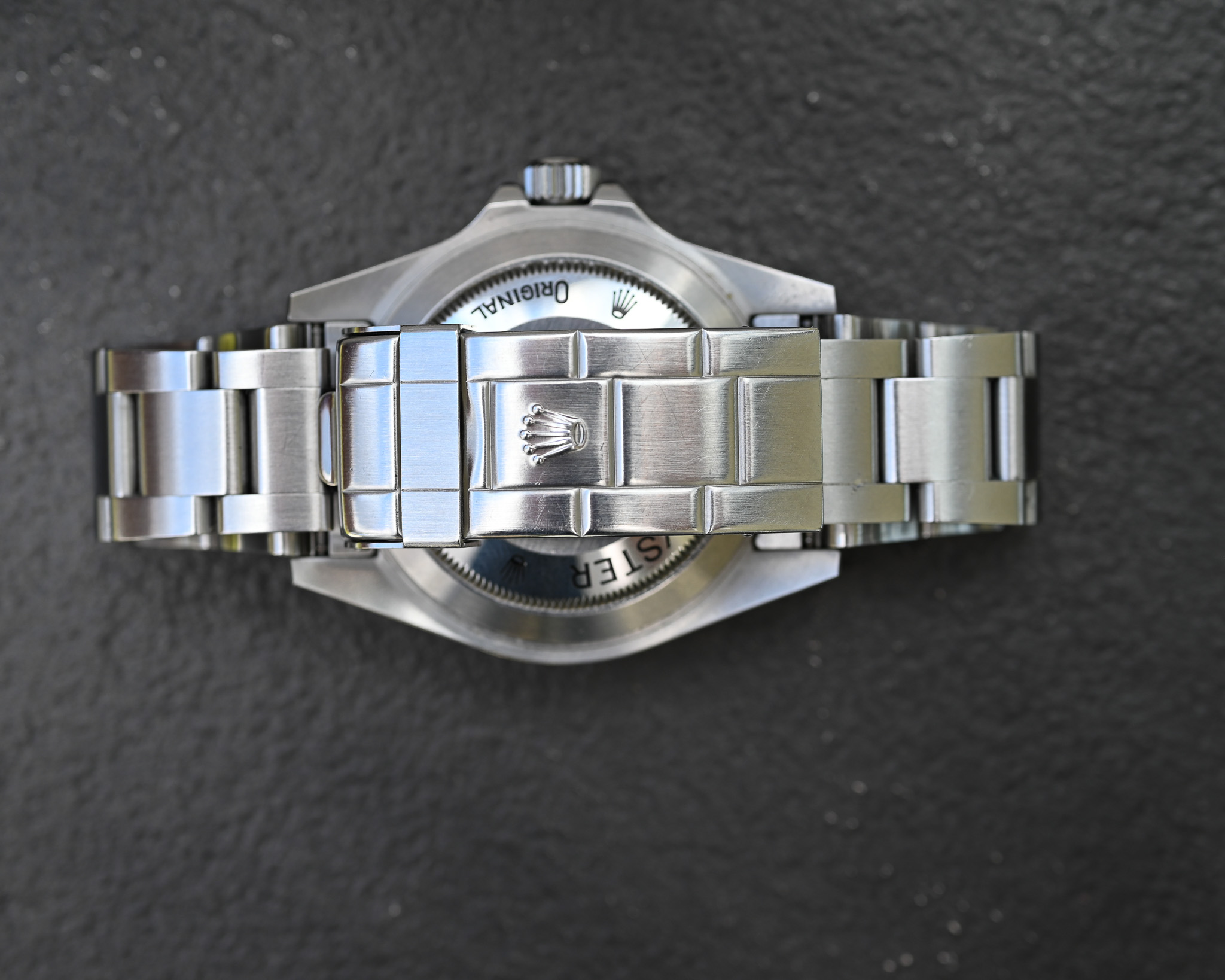 Das Gehäuse ist komplett unpoliert und zeigt lediglich sehr geringe, ehrliche Tragespuren. Die Kanten sind scharf, die Proportionen kräftig und genau so erhalten, wie man es sich bei einer späten 16600 wünscht. Ein selten gewordener Zustand, insbesondere bei professionellen Taucheruhren dieser Generation.