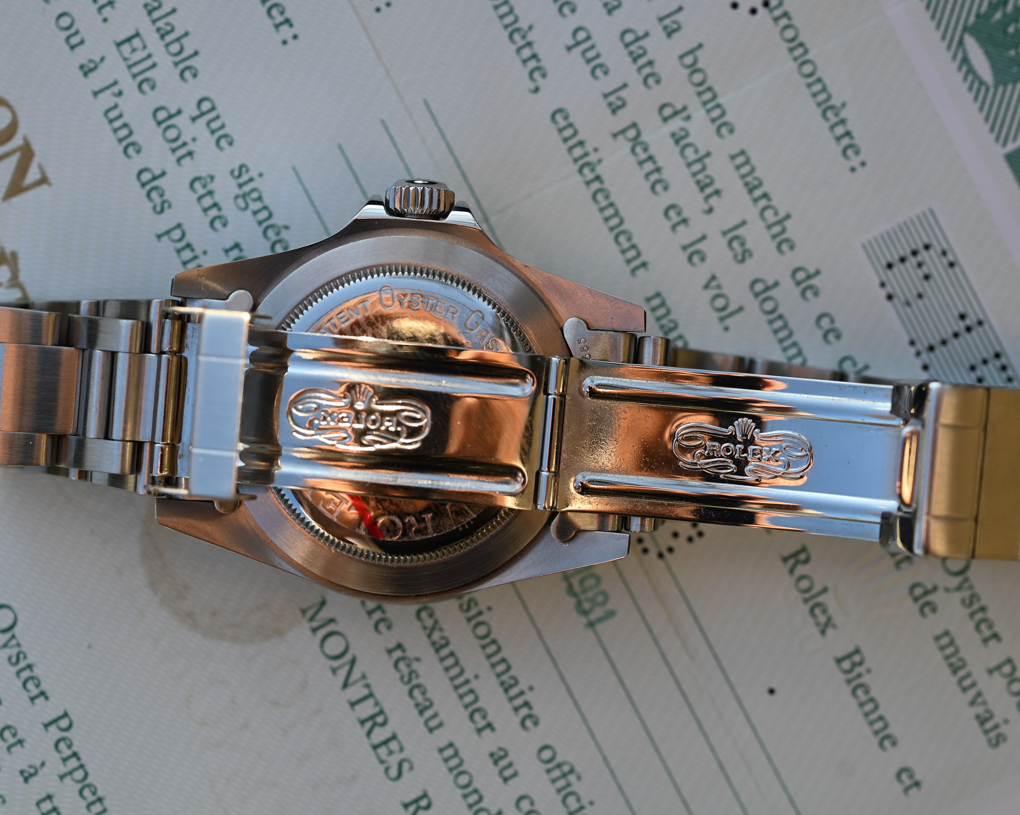 Ein besonderes Detail findet sich in den Originalpapieren: Die Uhr wurde damals in Singapur verkauft. Rätselhaft und zugleich spannend ist der Eintrag „333“ im Käuferfeld. Nach heutiger Erkenntnis wurde die Uhr seinerzeit an einen deutschen Diplomaten veräußert, der in Südostasien stationiert war. Es liegt nahe, dass Staatsbedienstete oder Diplomaten anstelle eines Namens eine Nummer als Käufervermerk erhielten – ein ungewöhnliches und historisch reizvolles Detail.