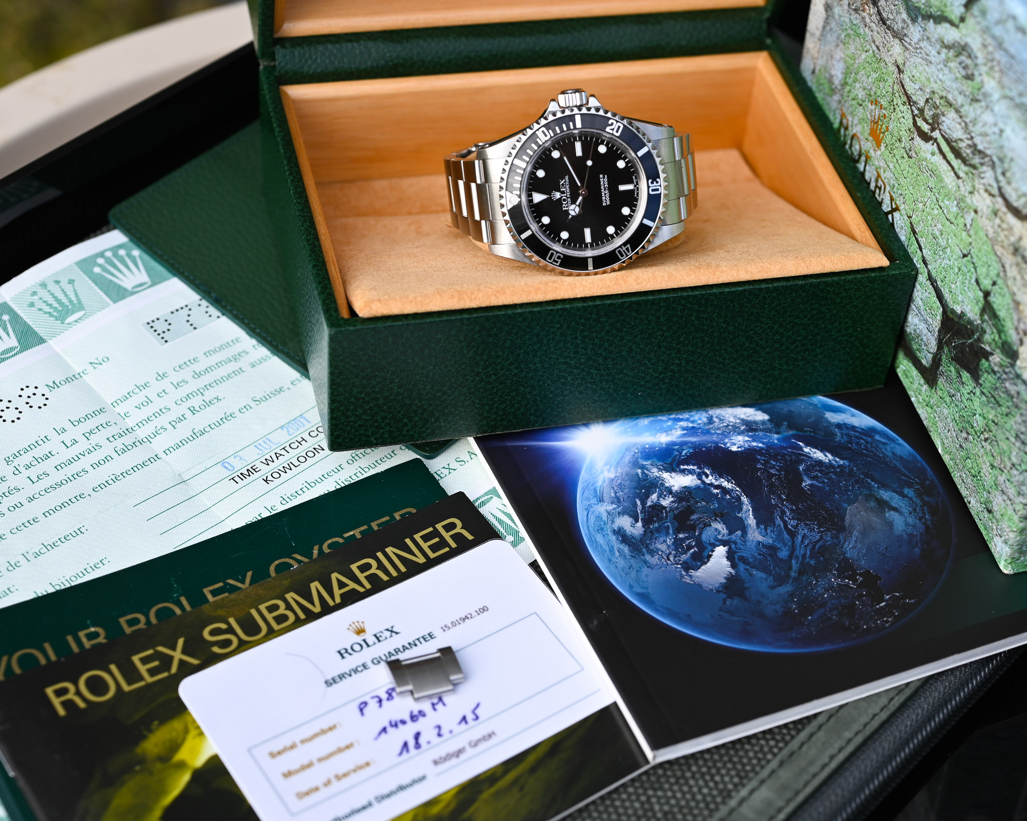 Eine hervorragende Gelegenheit, eine authentische Rolex Submariner 14060 mit vollständigem Zubehör und belegter Servicehistorie zu erwerben – heute schon ein echter Klassiker.