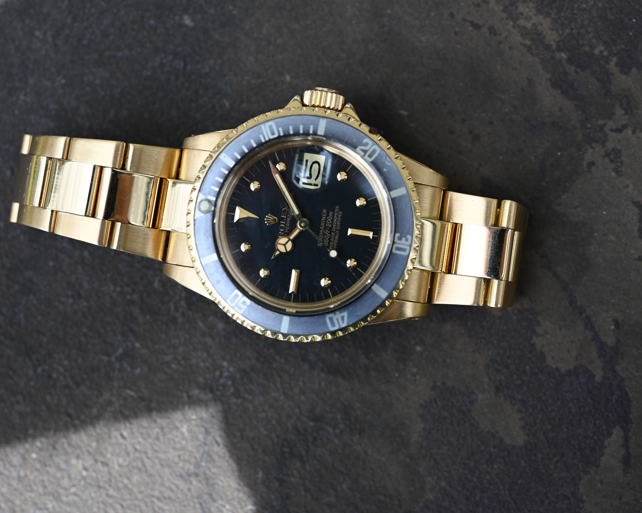 Das massive Gelbgoldgehäuse unterstreicht den kraftvollen Charakter dieser frühen goldenen Submariner und verleiht der Uhr eine Präsenz, die zugleich sportlich und luxuriös wirkt – ein Stil, der heute wieder verstärkt an Bedeutung gewinnt.
