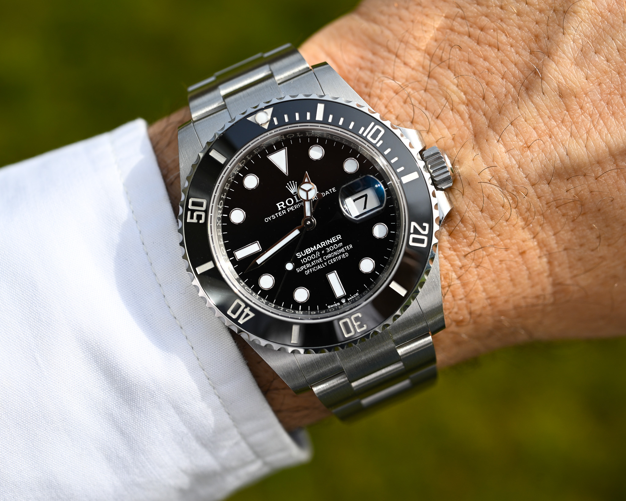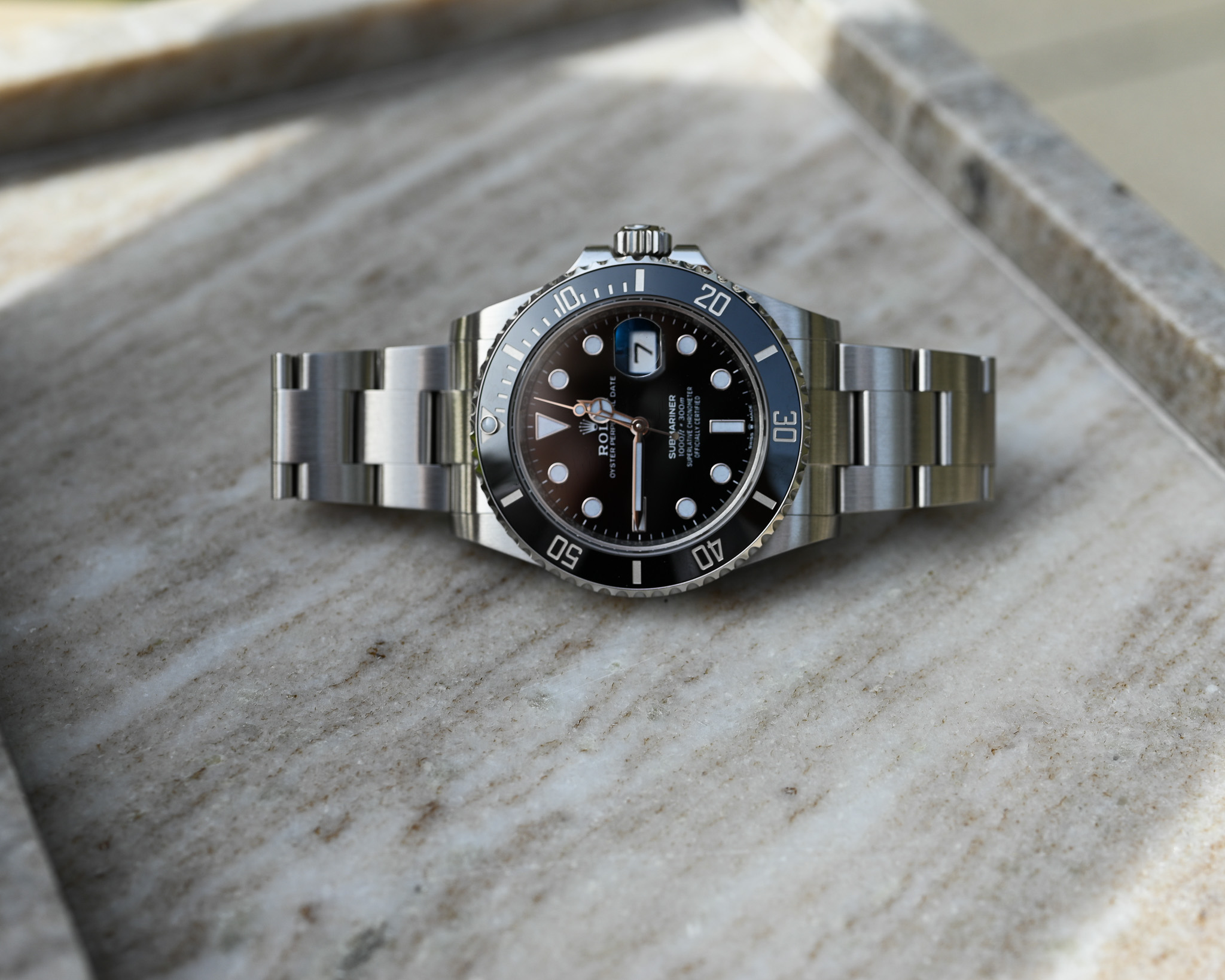 Mit ihrem 41 mm Edelstahlgehäuse, der schwarzen Cerachrom-Lünette und dem klassischen schwarzen Zifferblatt verkörpert die 126610LN genau das, was eine moderne Submariner ausmacht: robuste Technik, perfekte Proportionen und eine unverwechselbare Präsenz am Handgelenk.